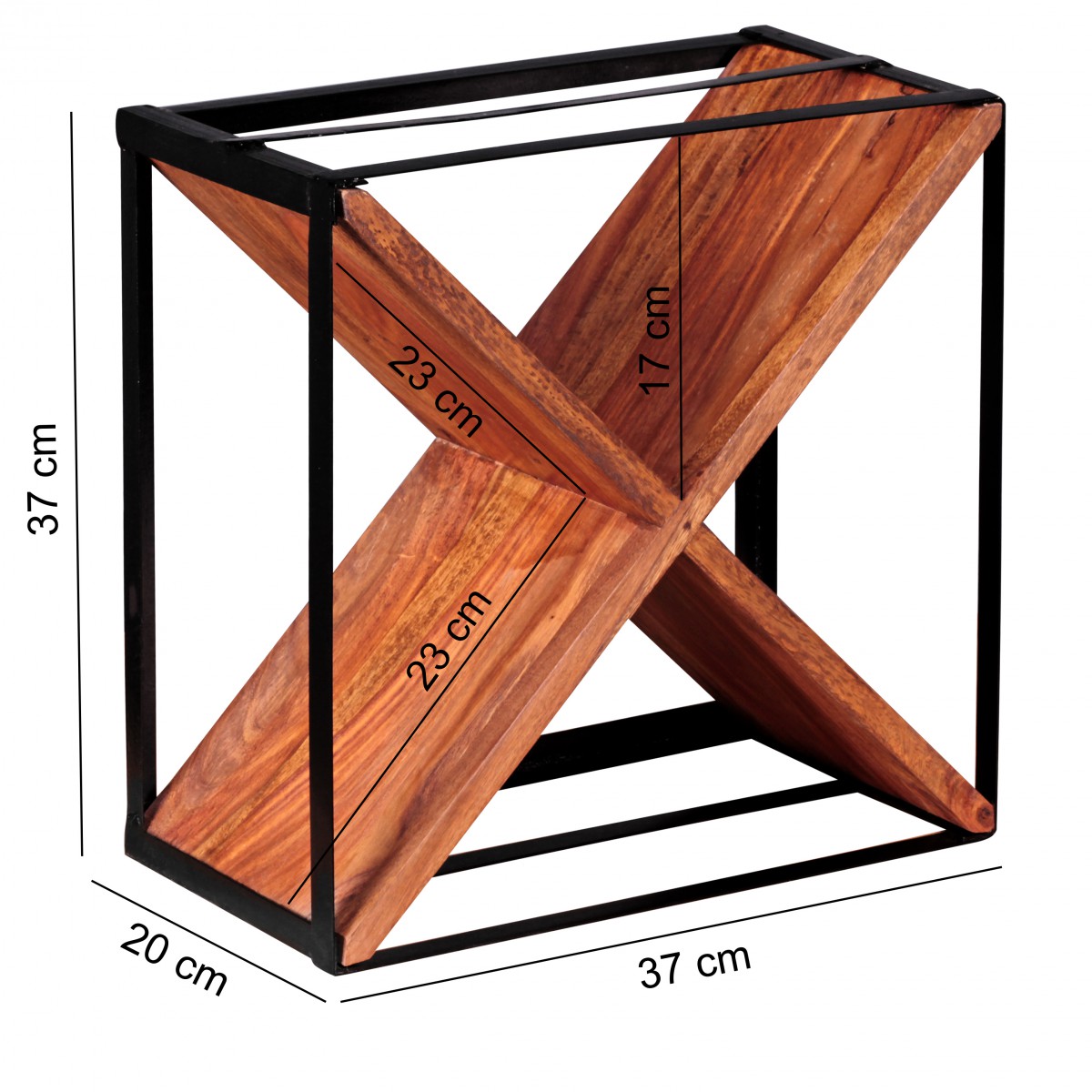 Información sobre el producto "Botellero de Madera Maciza Sheesham Natural 37x37x20 cm | Diseño Moderno en Forma de X"