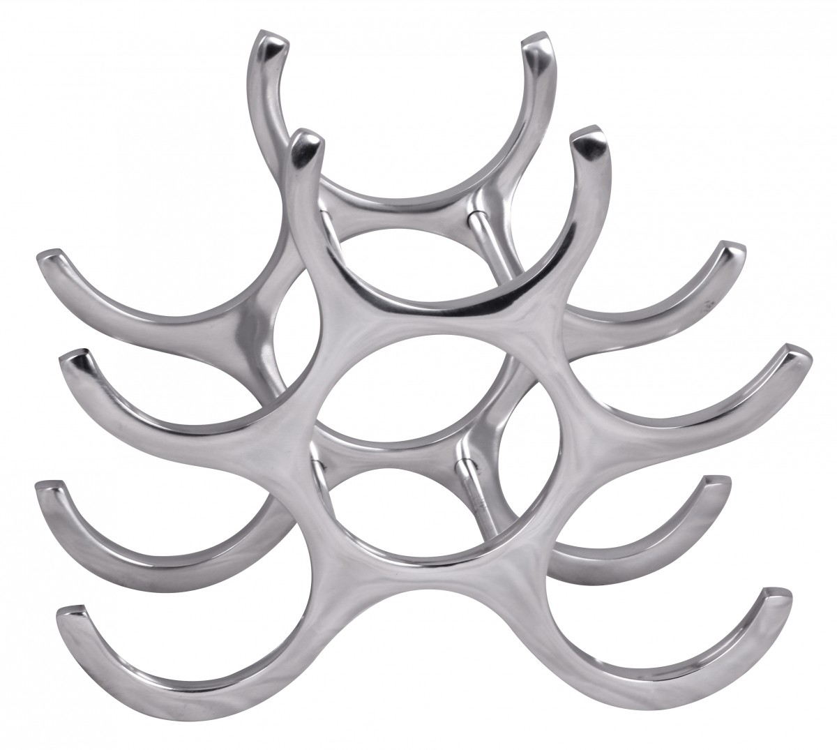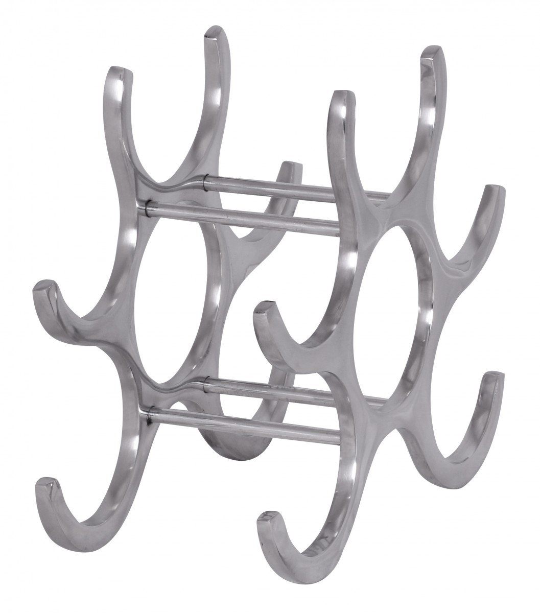 Optimice su almacenamiento con este botellero de diseño en aluminio plateado, capaz de contener hasta 6 botellas. Combina elegancia y funcionalidad, adaptándose perfectamente a una cocina o comedor moderno.