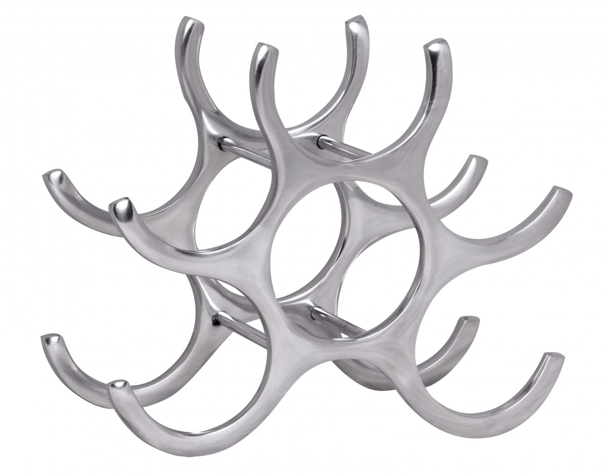 Botellero de vino de diseño en aluminio plateado para 6 botellas | Aluminio | 29 x 24 x 14 cm