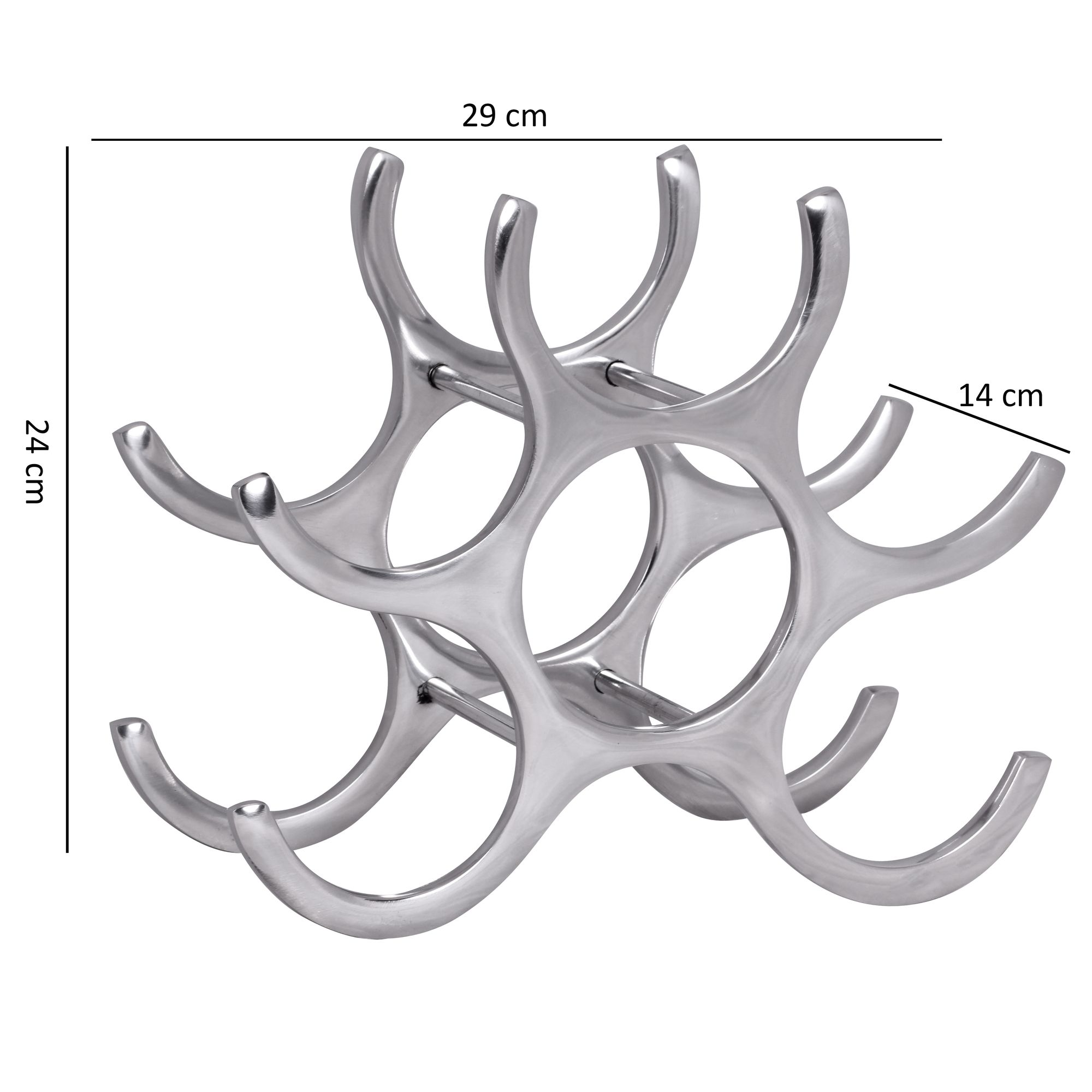 Información sobre el producto "Botellero de vino de diseño en aluminio plateado para 6 botellas | Aluminio | 29 x 24 x 14 cm"