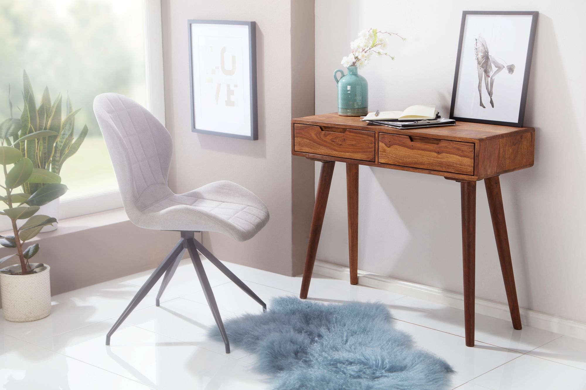 Consola de madera maciza Sheesham con 2 cajones | Color madera natural | Medidas 90x76x36 cm