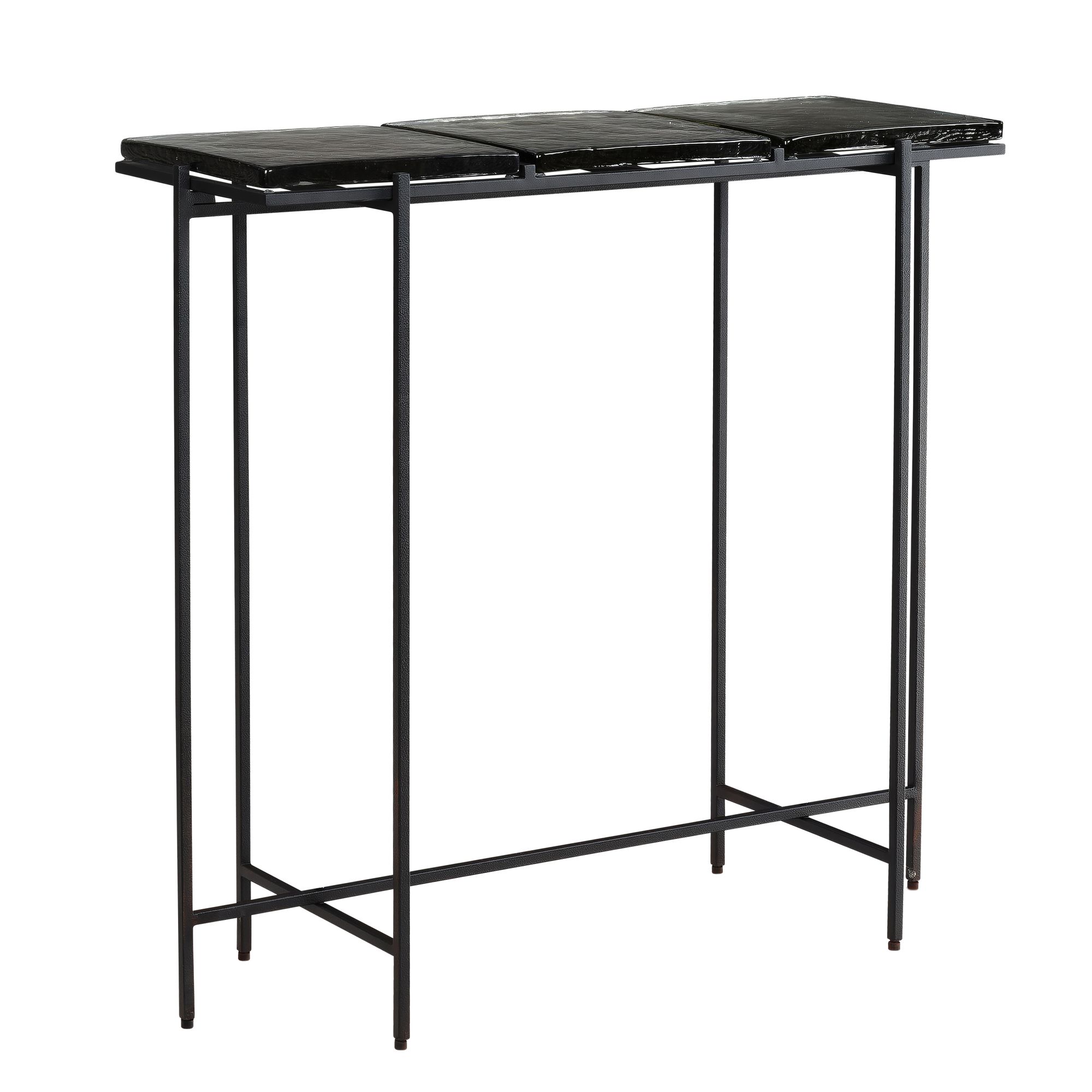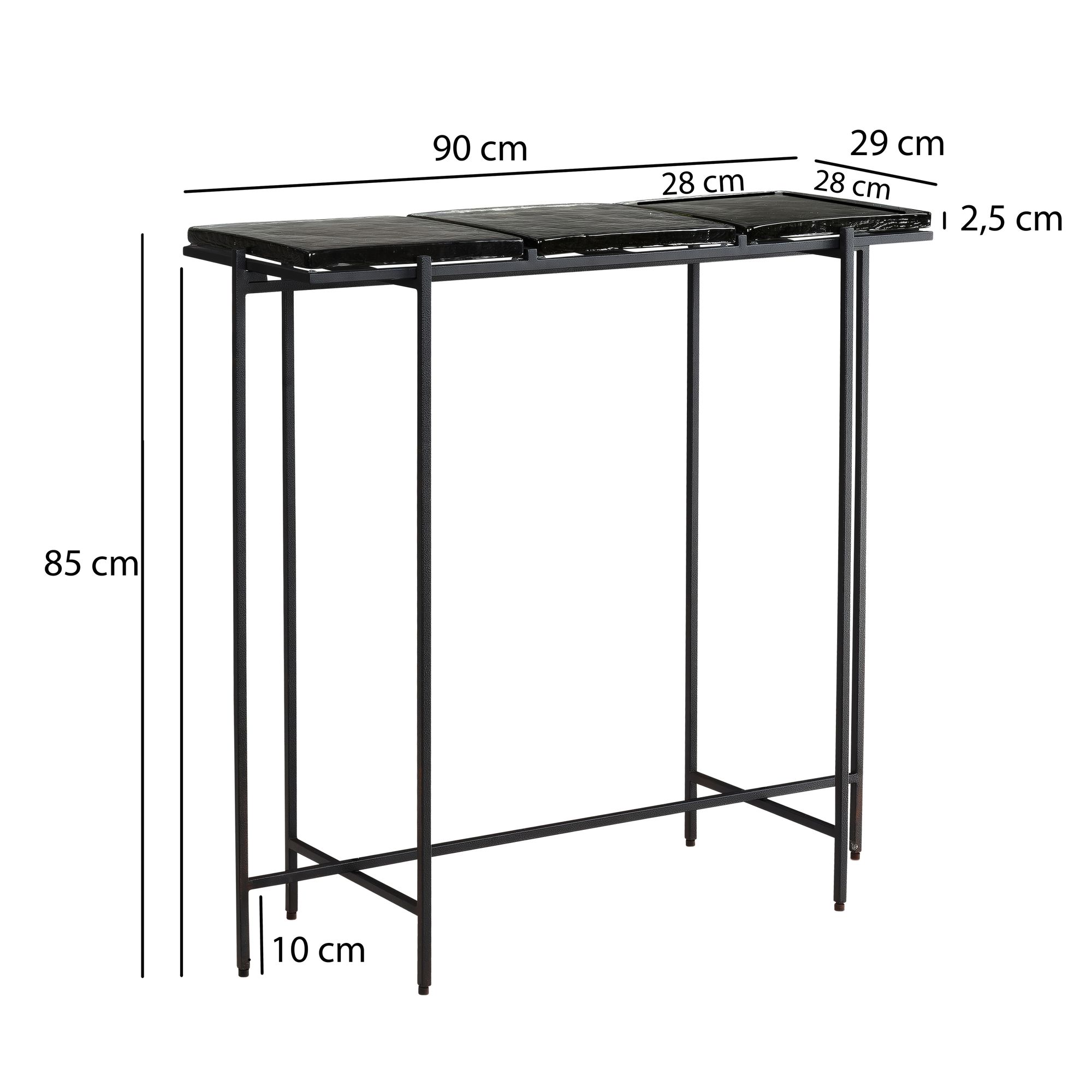 Consola negra 90x29x85 cm | Tableros de vidrio negro | Metal negro con recubrimiento en polvo