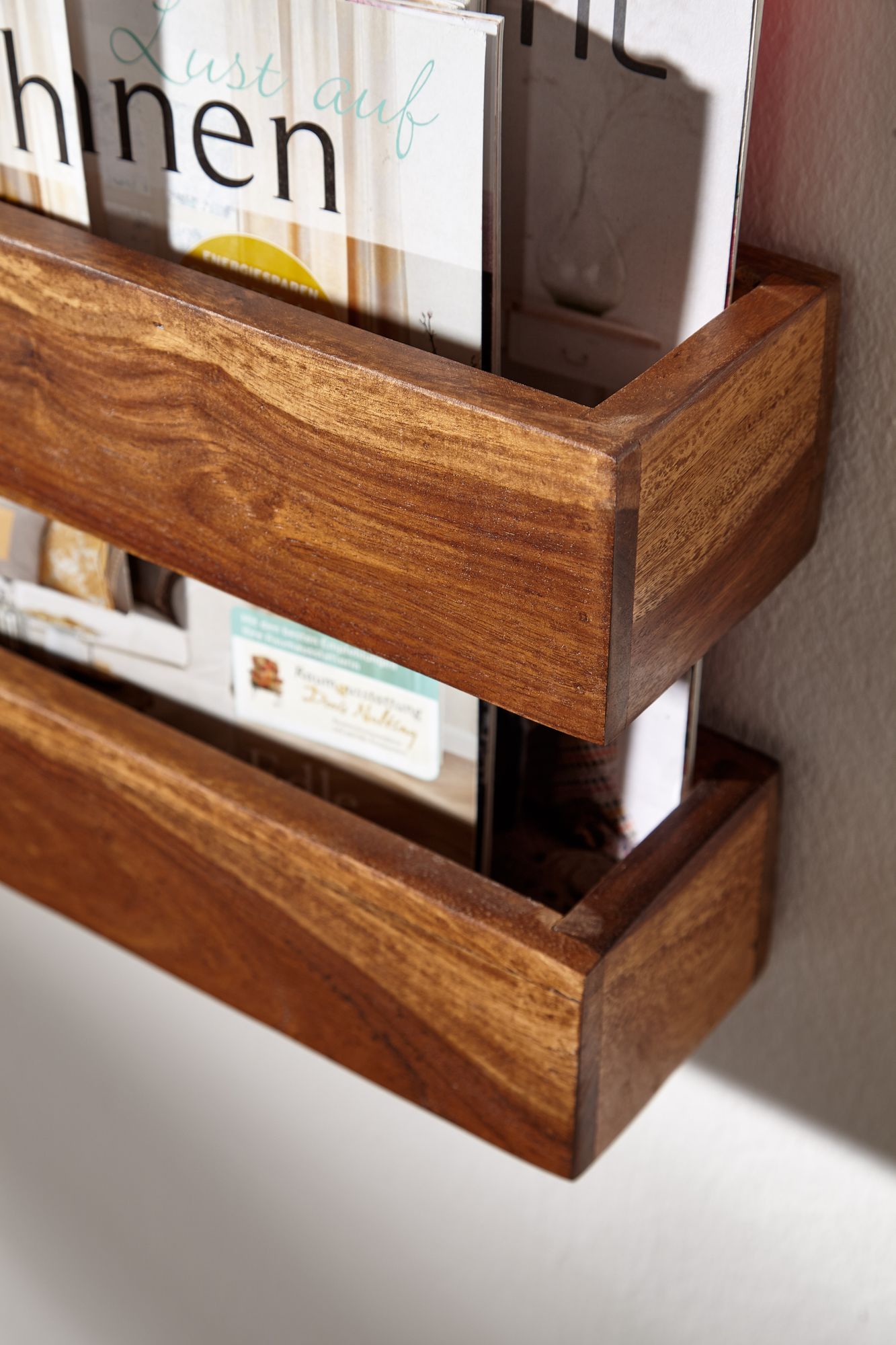 Información sobre el producto "Revistero MUMBAI | Madera maciza Sheesham natural | 30x72x10 cm | 2 compartimentos"