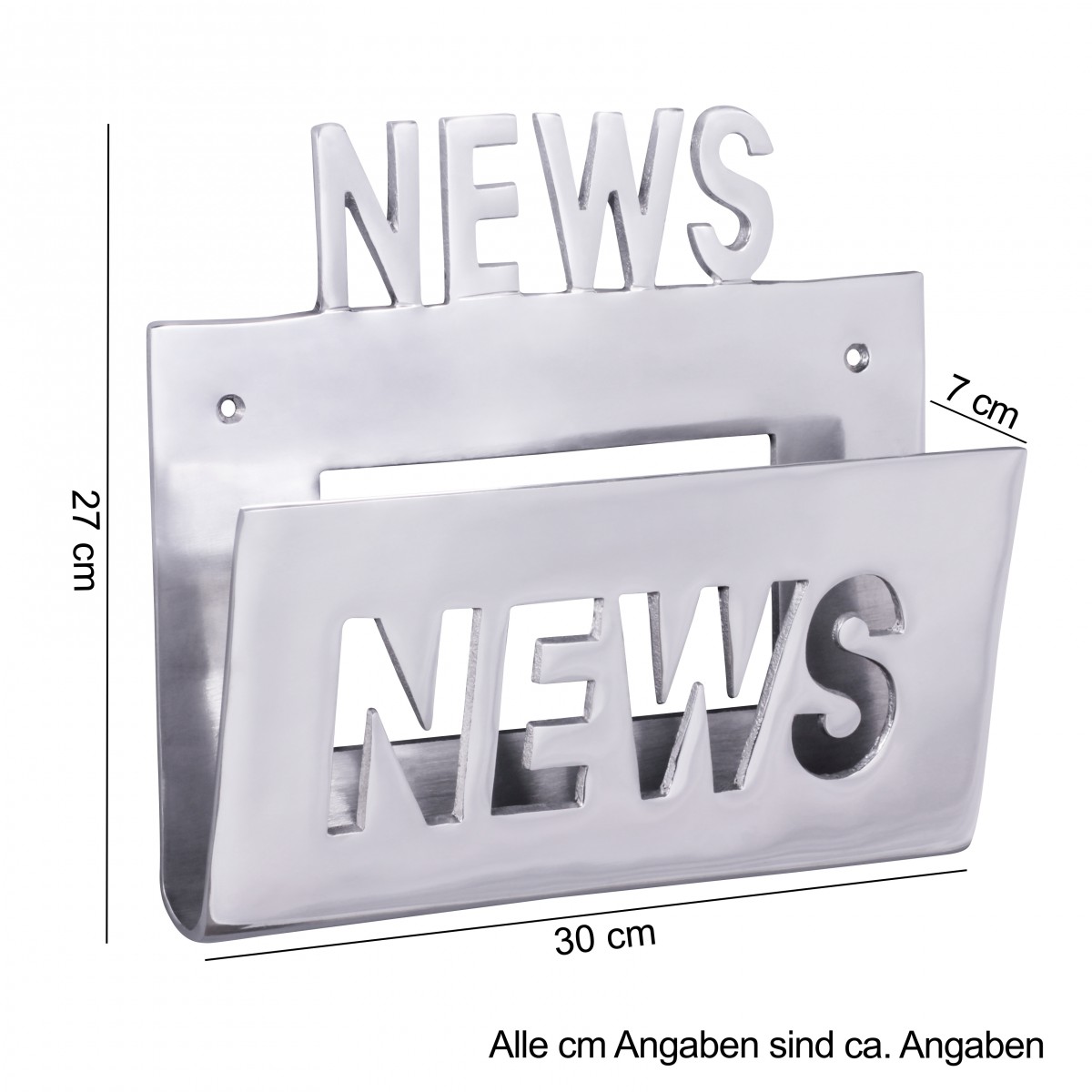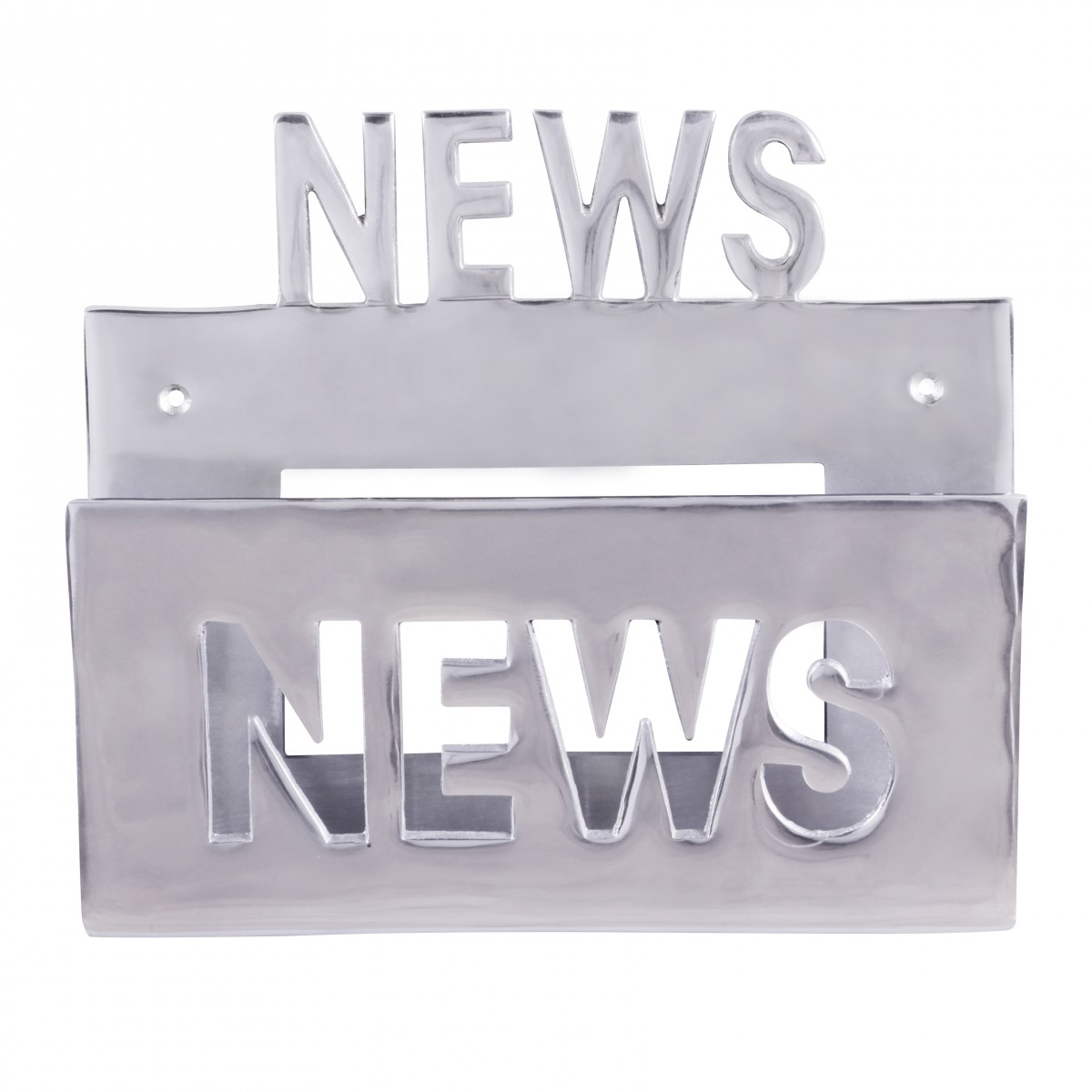 Organiza tus documentos de manera eficiente y da estilo a tus paredes con este soporte de folletos de diseño para pared en aluminio plateado. Su acabado cuidado y el rótulo 'News' aportan un toque moderno y atractivo.