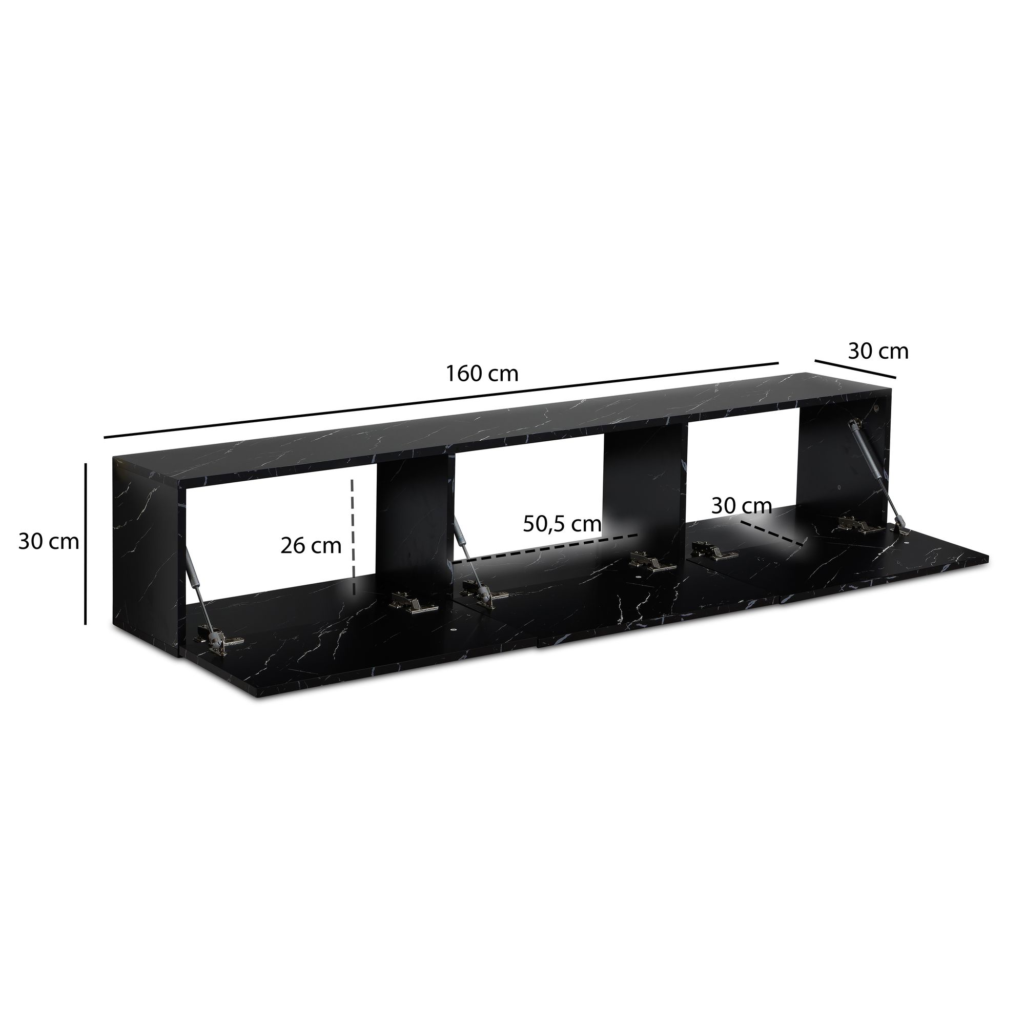 Lowboard Colgante Efecto Mármol Negro | 160x30x30 cm | MDF con Revestimiento de Melamina