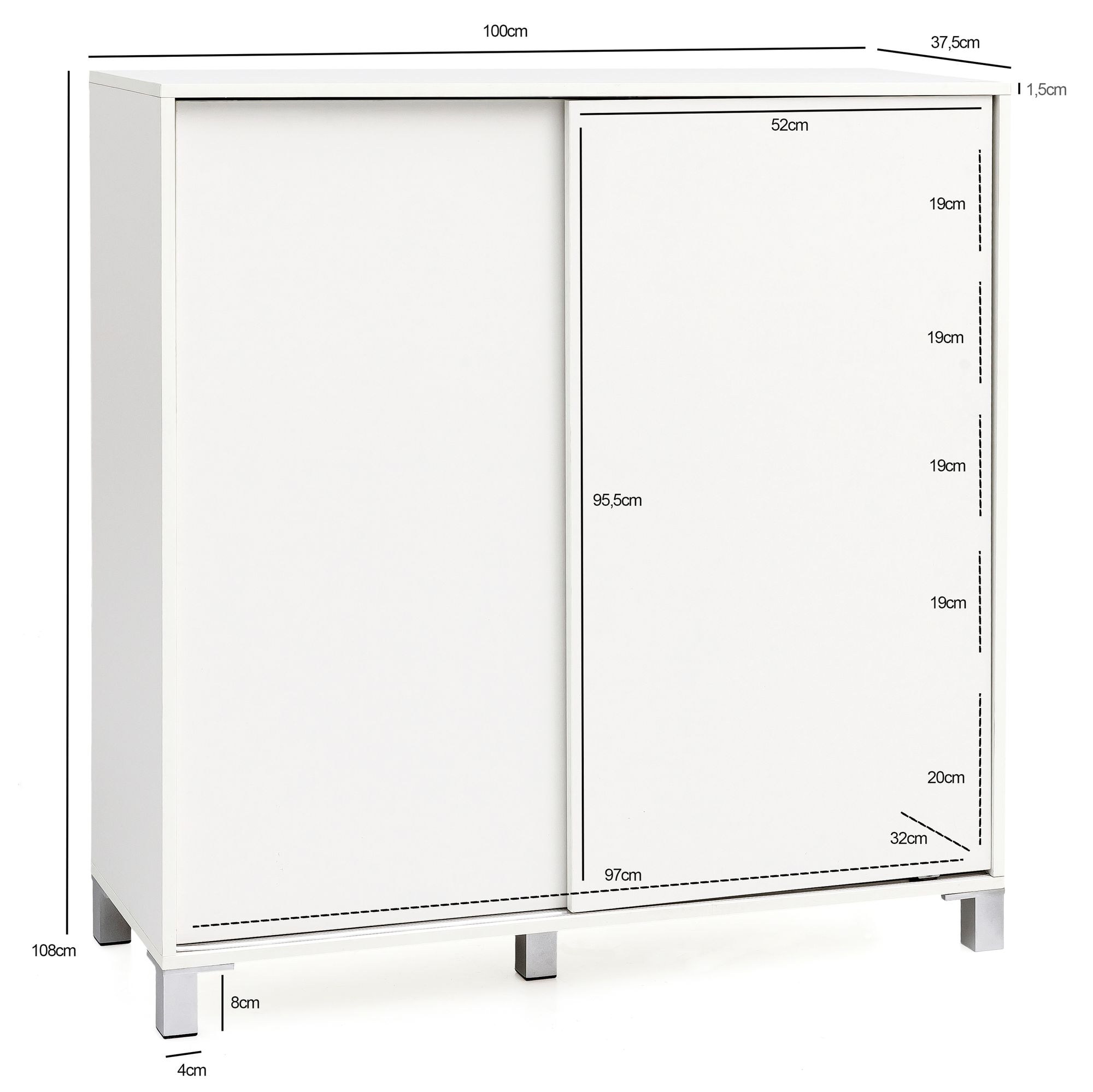 Armario para zapatos blanco 100x108x37,5 cm con 5 estantes extraíbles | Mueble zapatero moderno