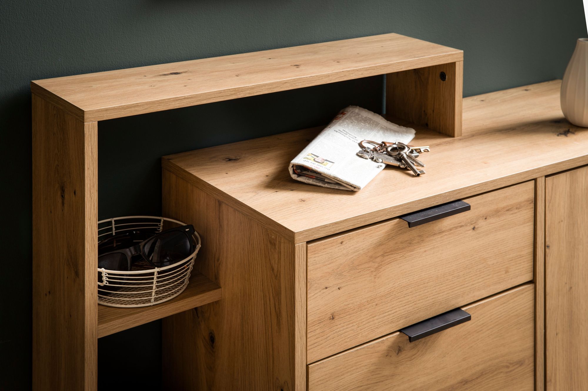 Información sobre el producto "Armario para zapatos con decoración de roble | Marrón y negro | 98x110x30 cm"