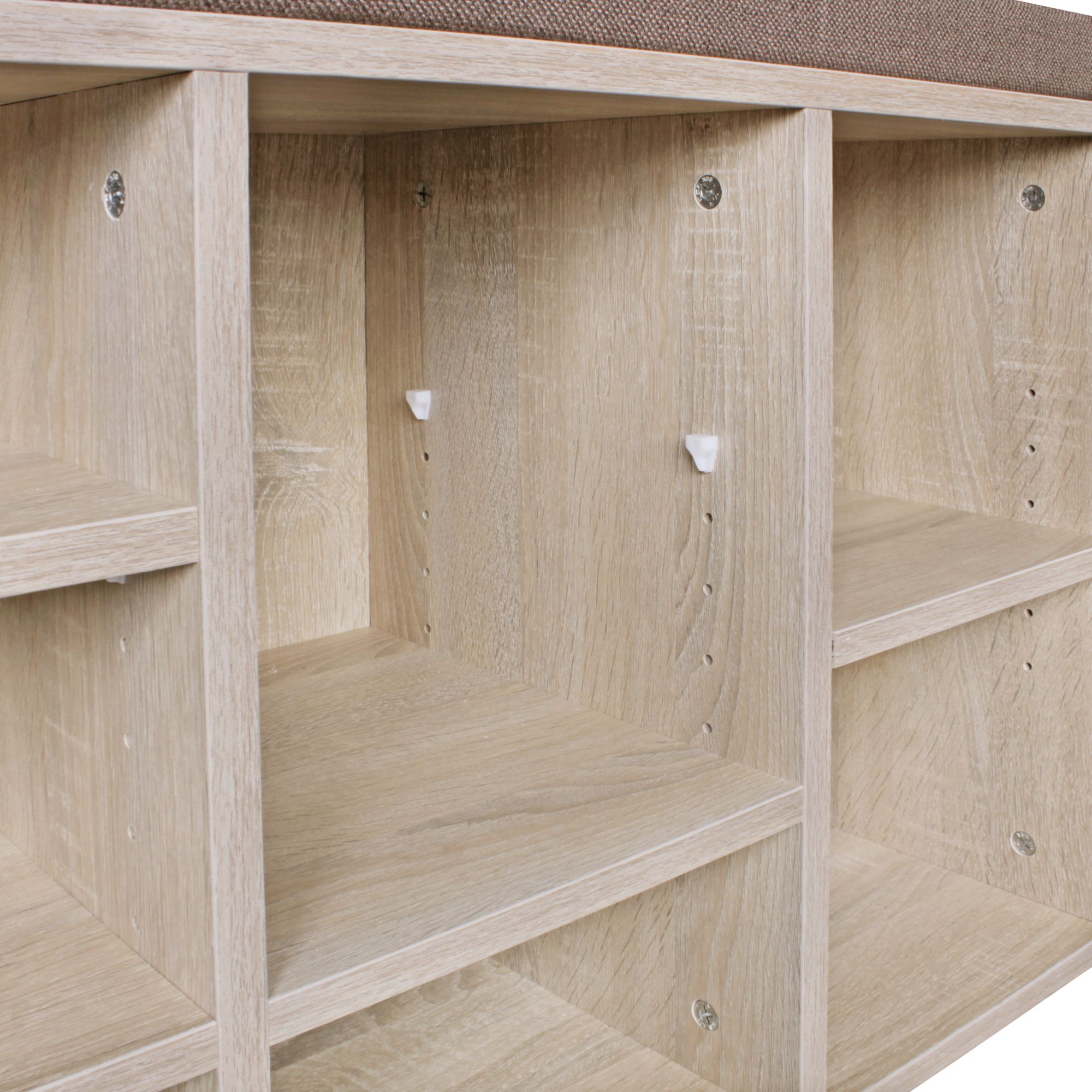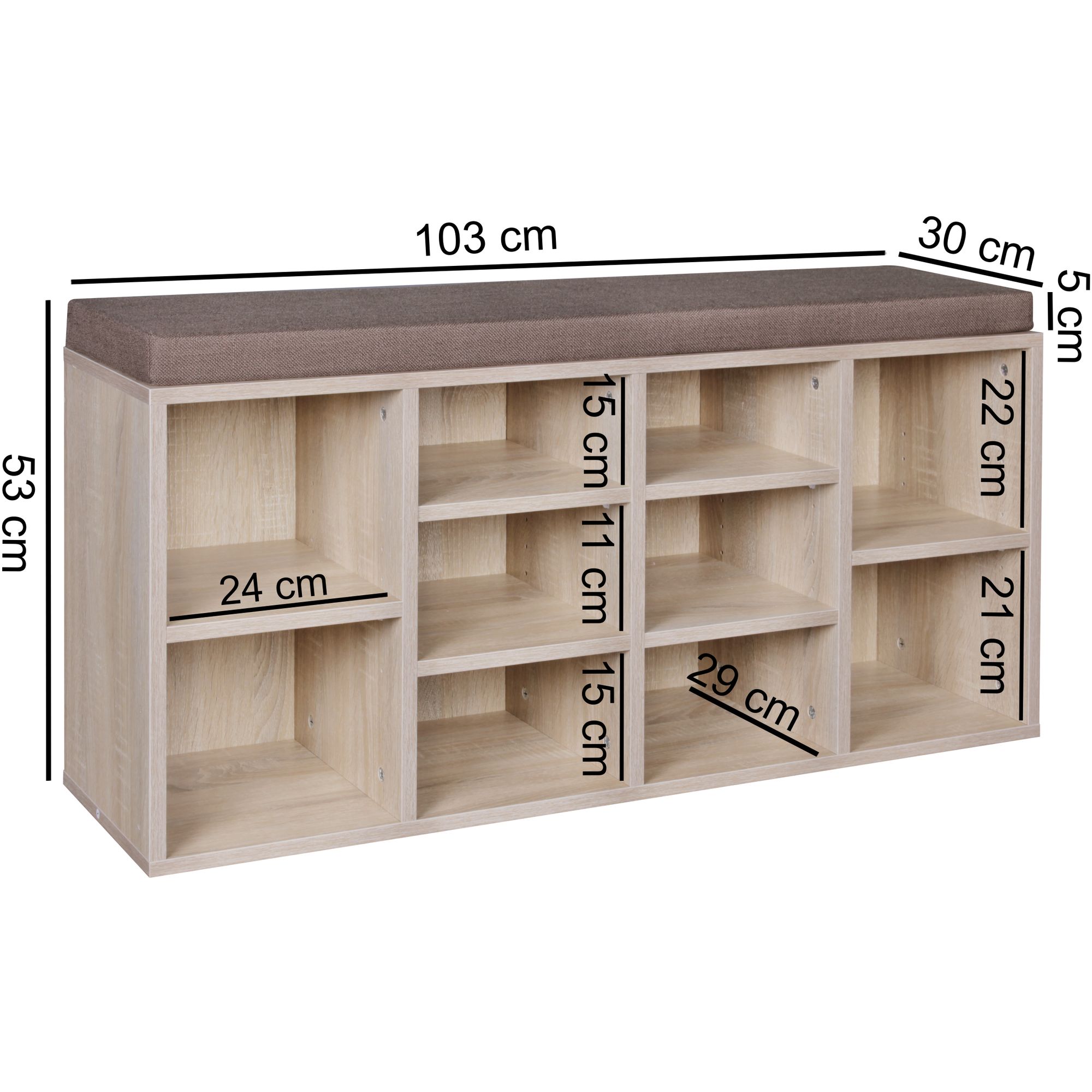 Información sobre el producto "Banco para zapatos 103,5x53x30 cm | Acabado sonoma | Banco de entrada con cojín marrón"