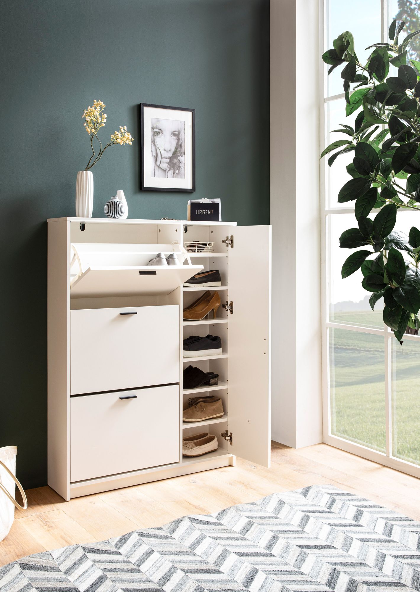Zapatero Blanco | 90x120x24 cm | MDF Lacado con Tiradores Negros