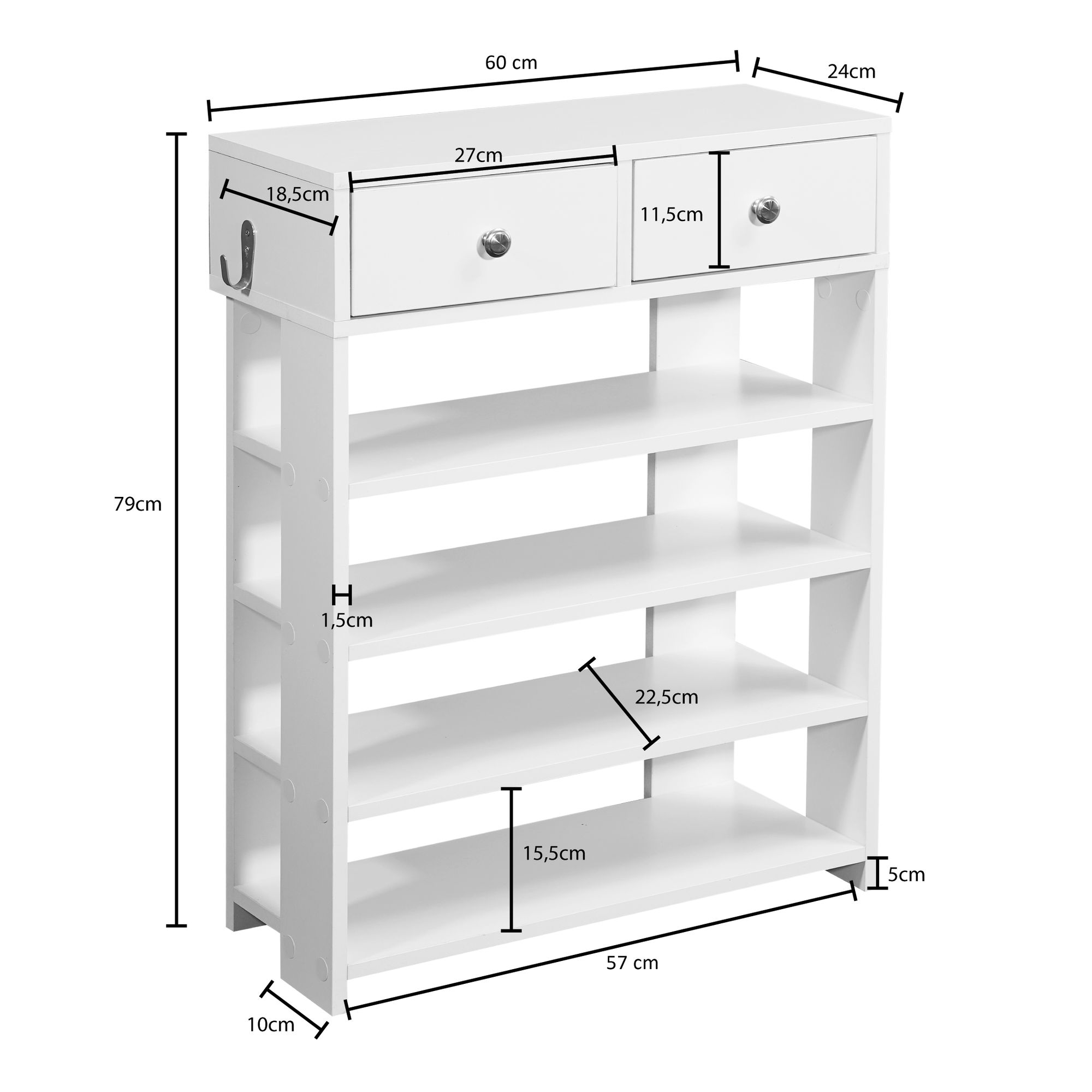 Zapatero diseño Blanco | 60x79x24 cm | 2 Cajones, 4 Compartimentos, mueble de entrada