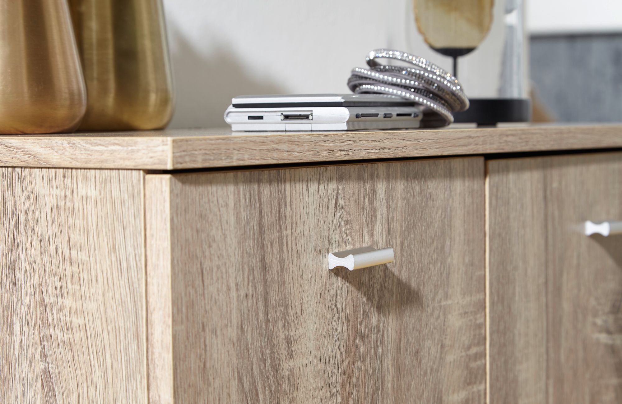 Optimice su espacio con este zapatero de diseño moderno y atemporal, fabricado en tablero de partículas con acabado roble Sonoma. Cuenta con cuatro compartimentos y tres estantes, apto para aproximadamente 12 pares de zapatos. Sus dos puertas con elegantes tiradores mantienen organizado el recibidor, ideal para espacios reducidos.
