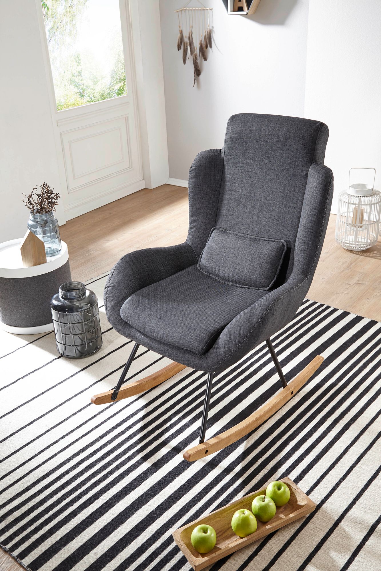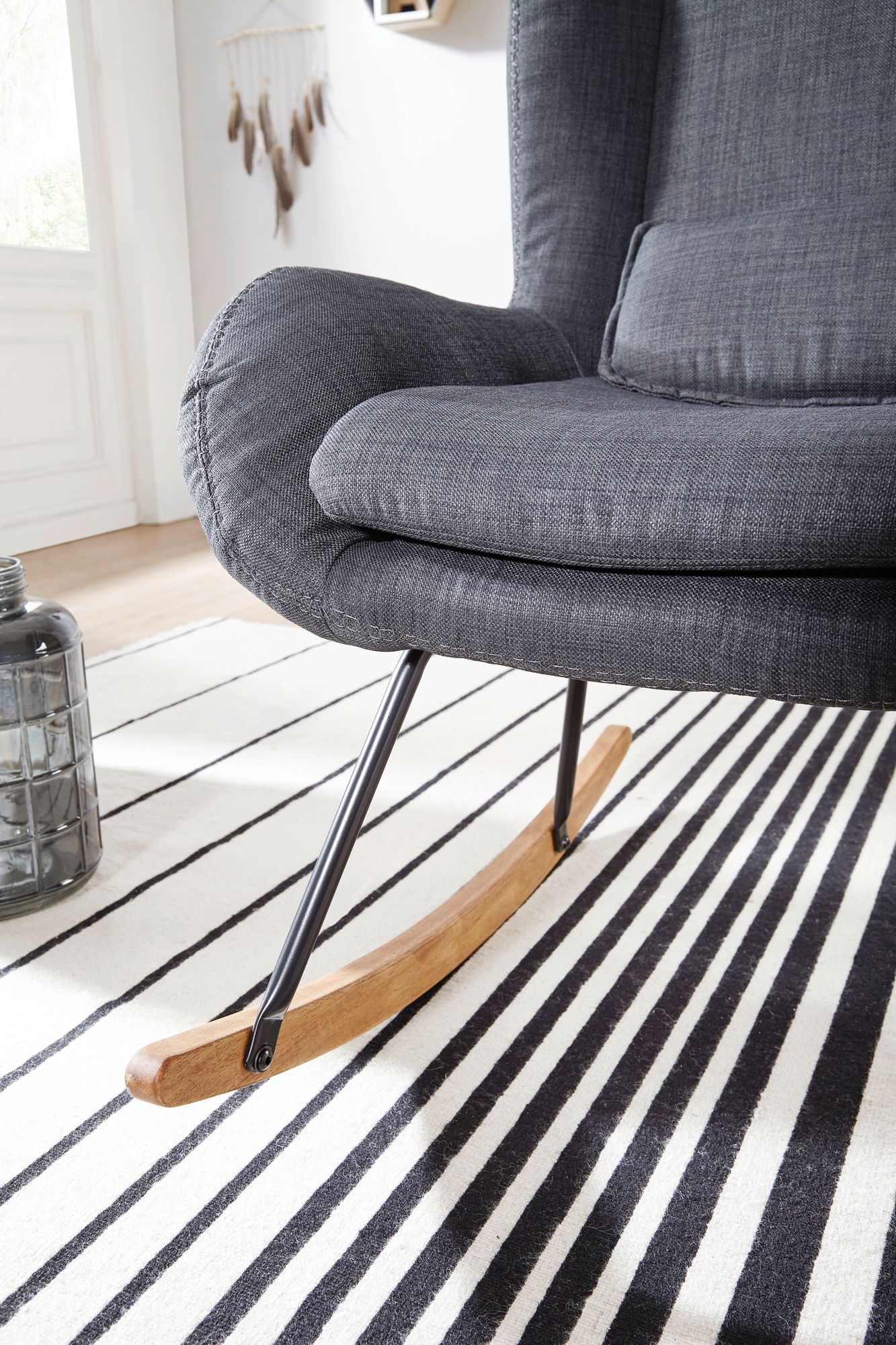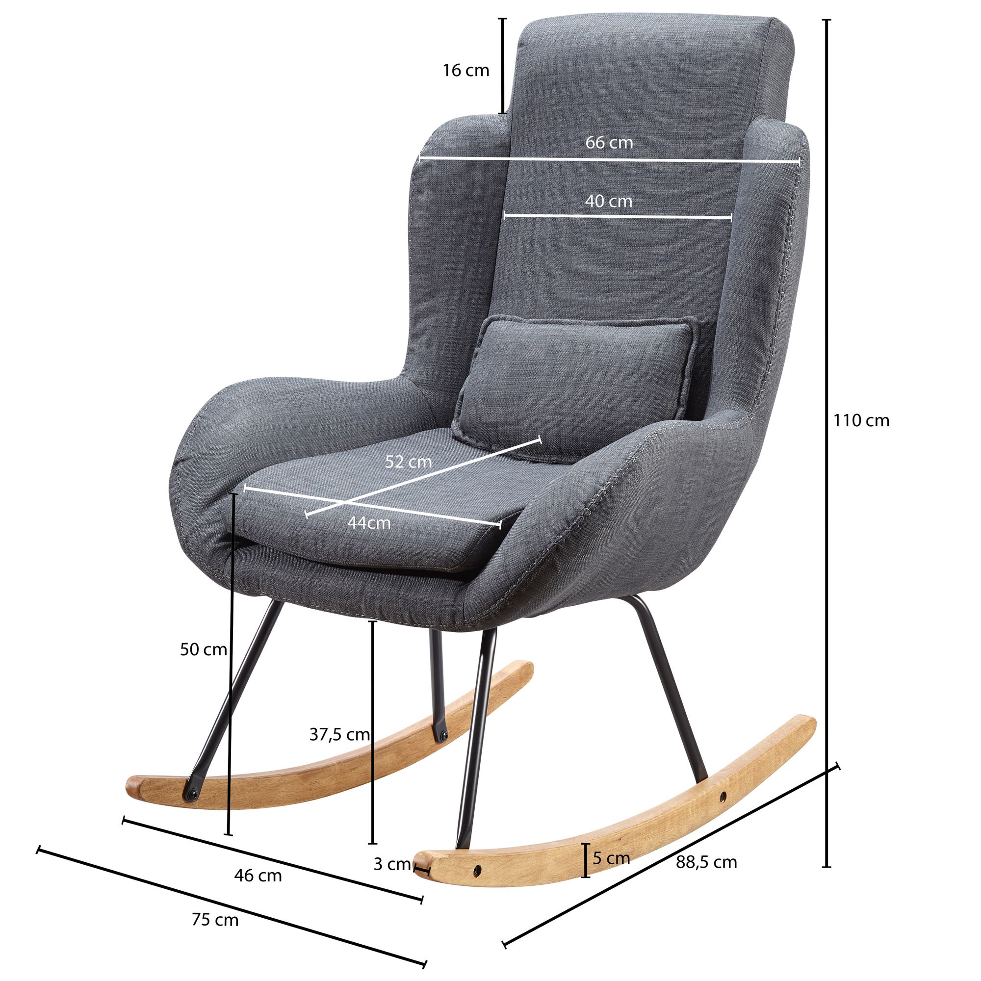 Información sobre el producto "Mecedora rocky antracita diseño sillón de relajación 75 x 110 x 88,5 cm"