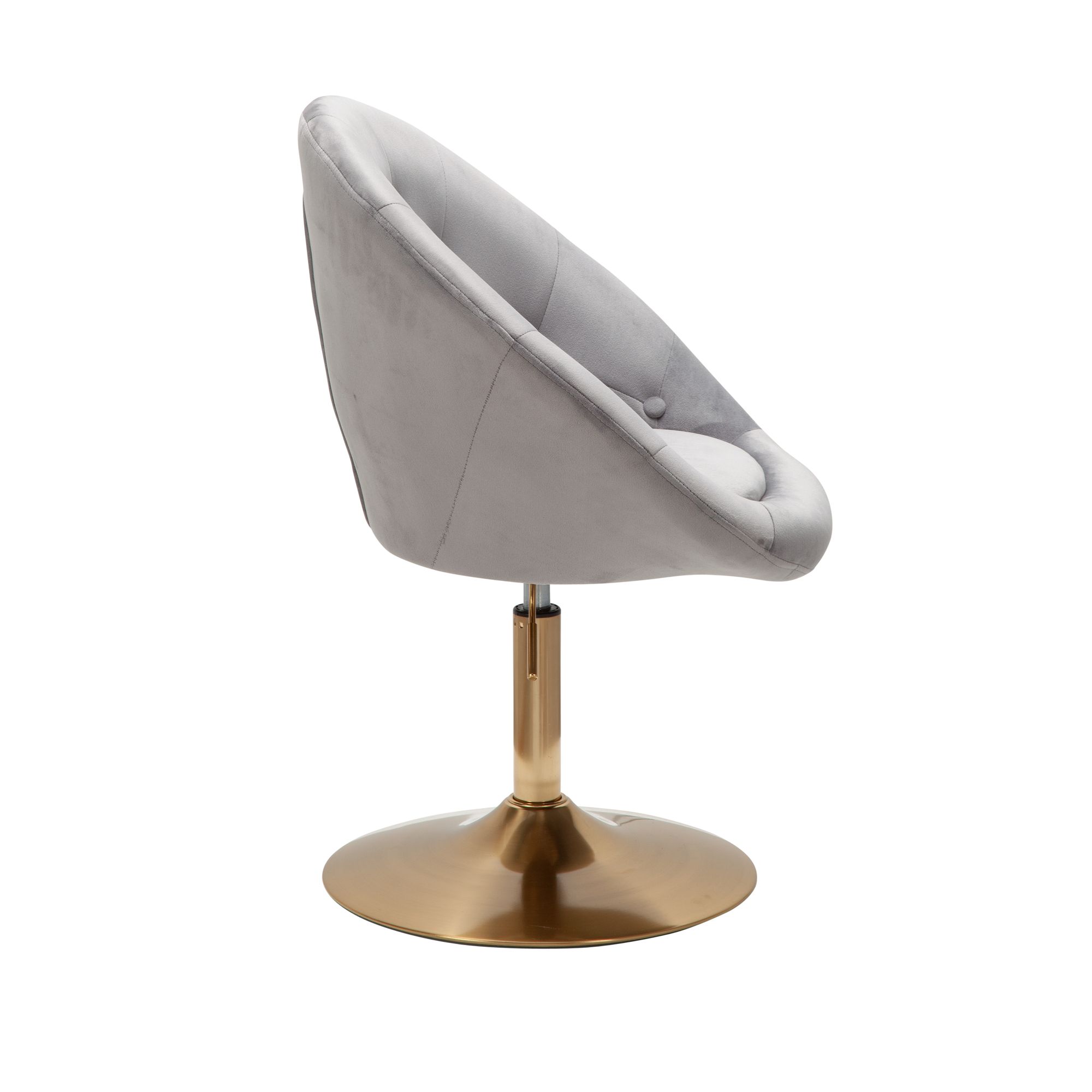 Sillón lounge de terciopelo gris y dorado | Diseño giratorio | 67x80-100x62 cm