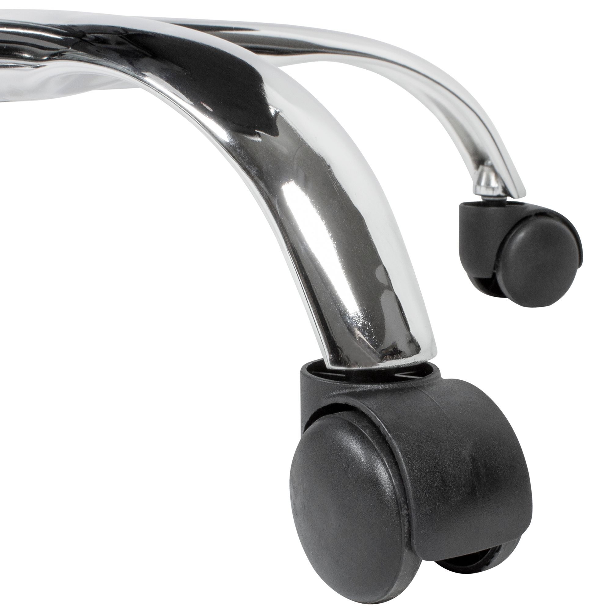 - Debido a la rueda giratoria en la mecánica, la silla se puede ajustar a su peso corporal