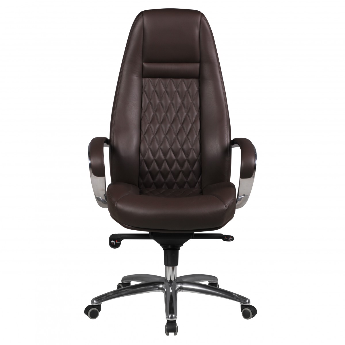 Silla de oficina AUSTIN cuero genuino marrón | Base de aluminio plateada | Altura 120-130 cm | Ancho 68 cm