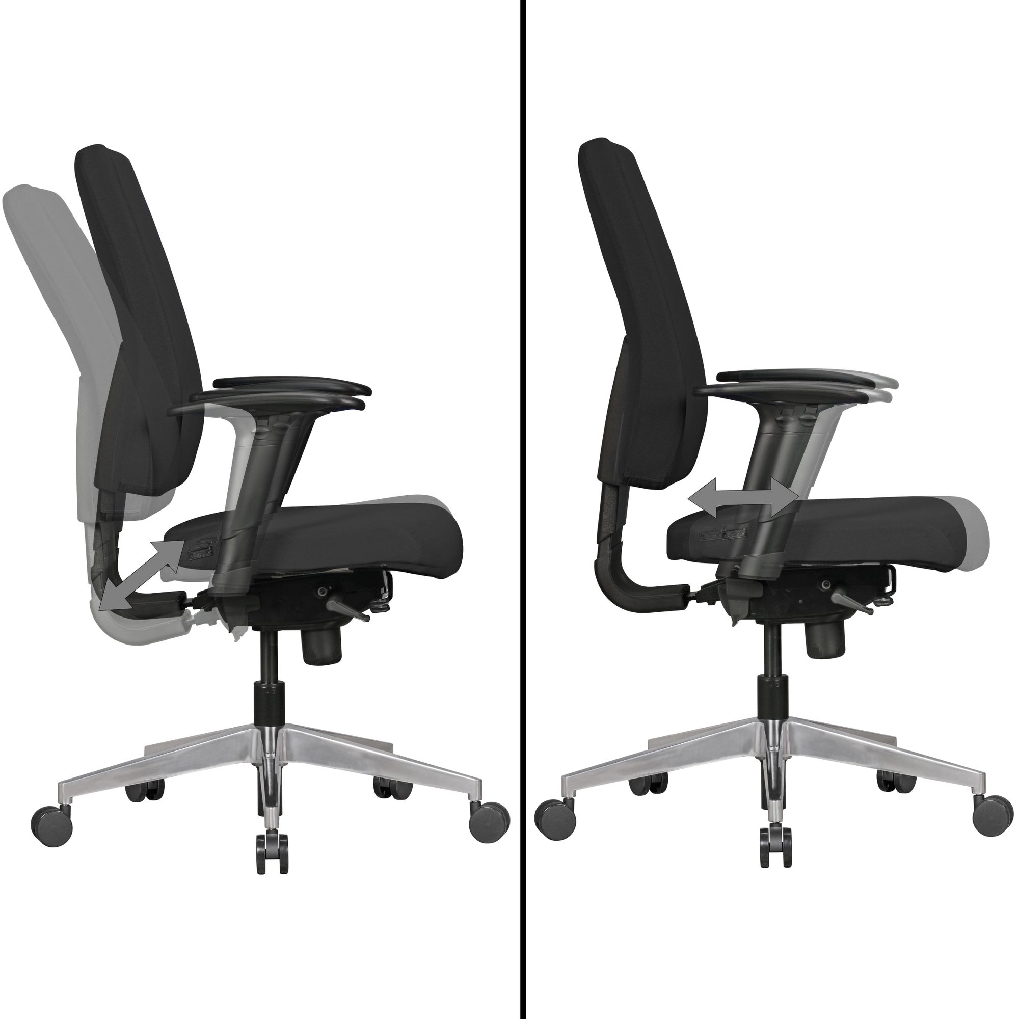 Los reposabrazos ajustables en altura y la mecánica síncrona de 3 puntos permiten un ajuste personalizado y soporte lumbar. La profundidad del asiento es regulable en 5 cm para mayor comodidad.