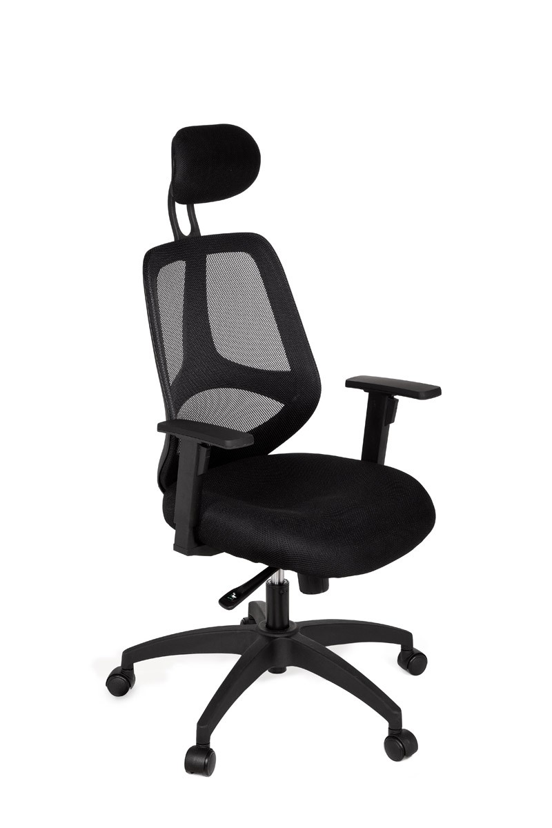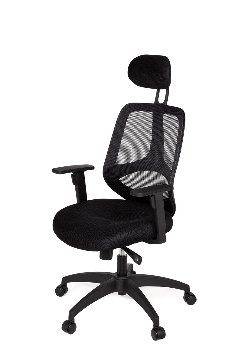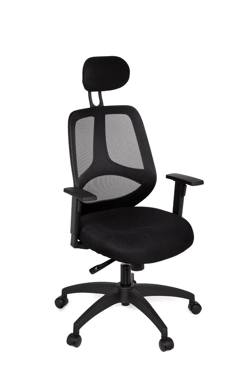 Silla de oficina de escritorio negro tela 120 kg con reposacabezas