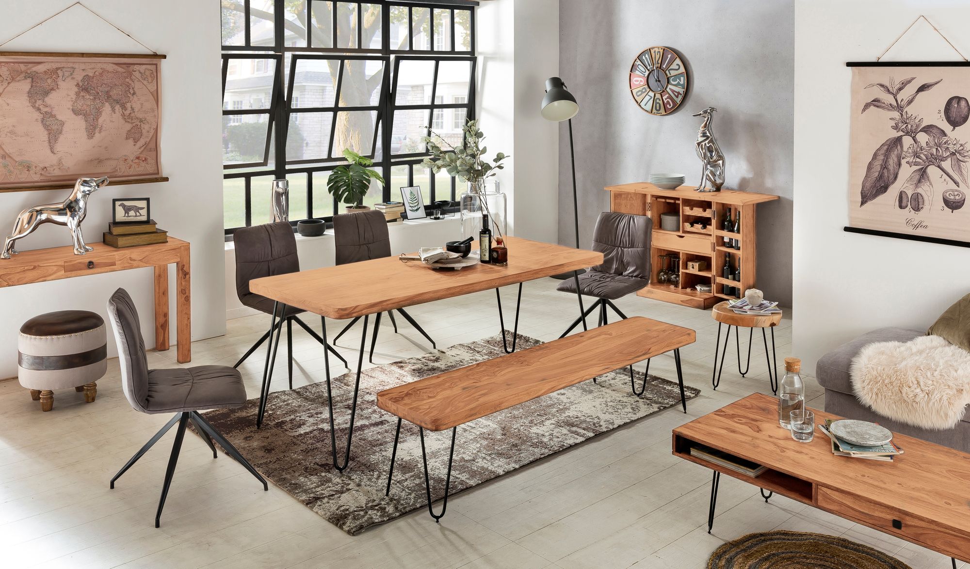 El banco de comedor BAGLI en madera maciza natural de acacia combina encanto rústico con resistencia duradera. Ideal para ahorrar espacio en cocina y comedor, destaca por su acabado cálido y único que aporta carácter a cualquier estancia.