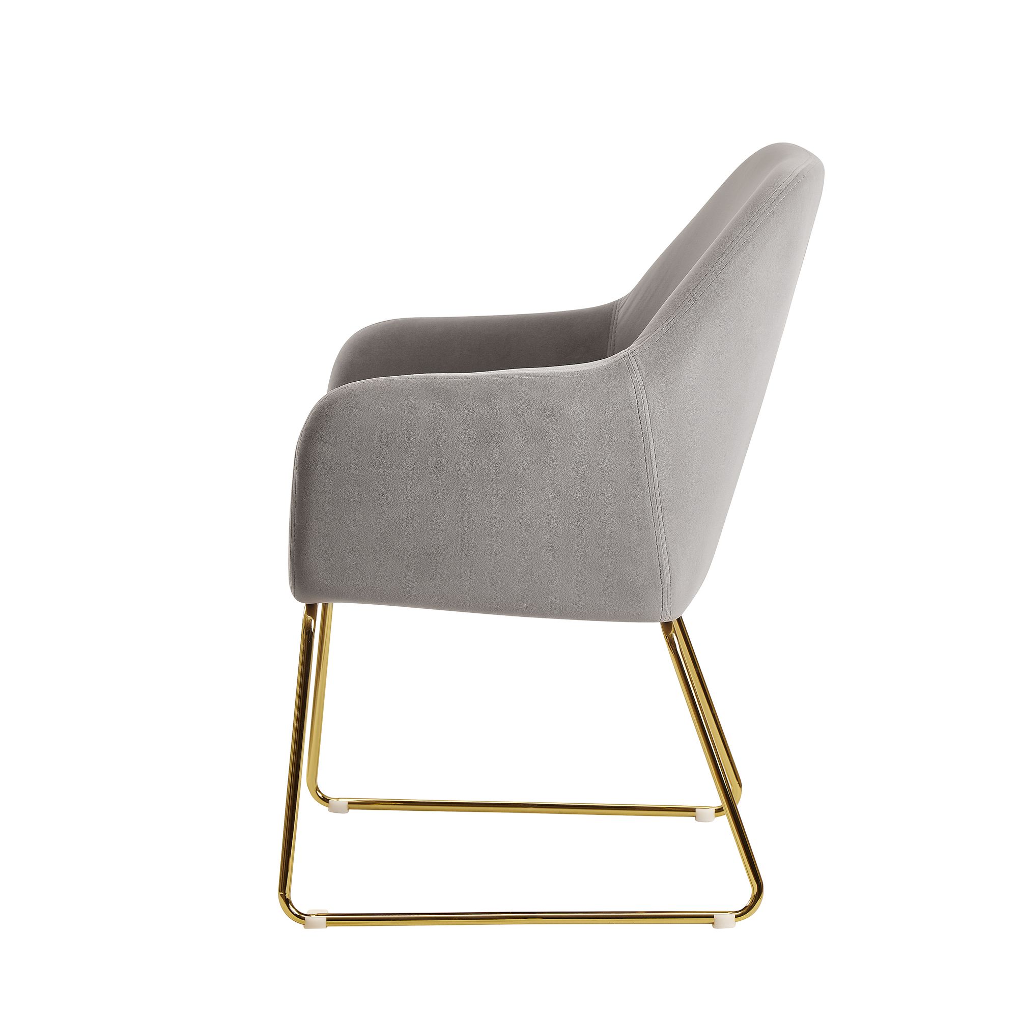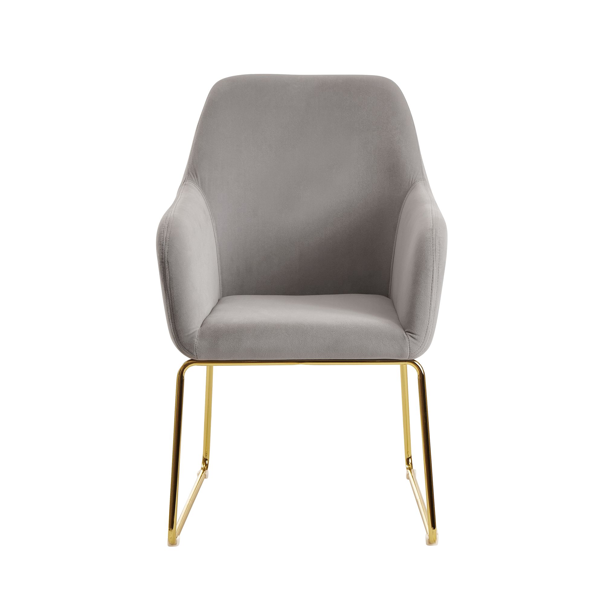 Comedor silla de cocina de terciopelo gris claro con patas doradas