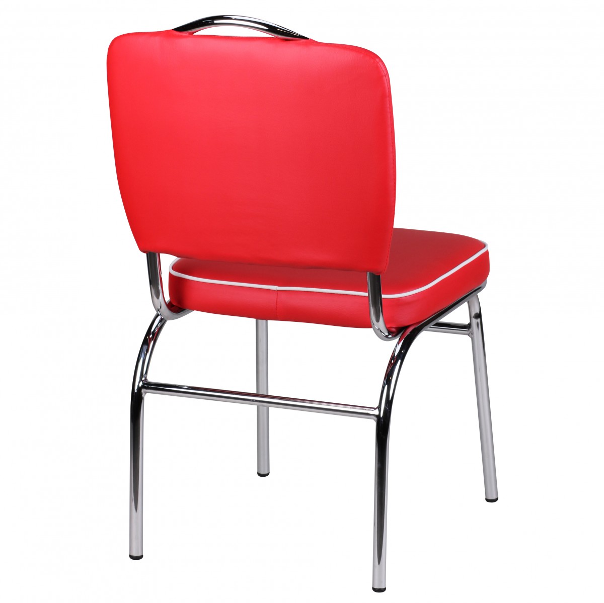 Agregue un toque vintage a su comedor con esta silla American Diner de los años 50 con un diseño retro auténtico. La silla combina estilo y comodidad con su asiento y respaldo acolchados en polipiel roja y blanca, decorados con costuras contrastantes blancas.
