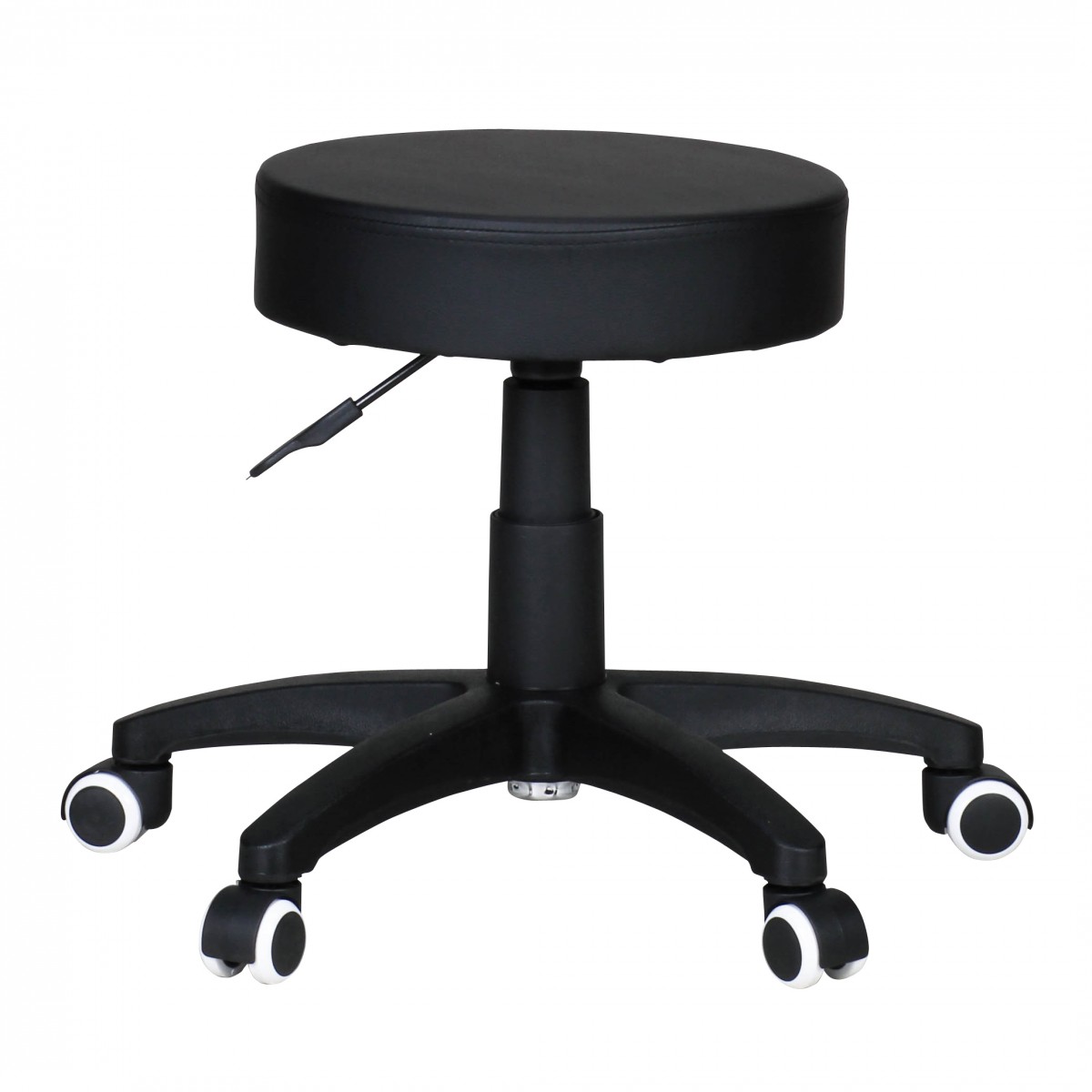 Información sobre el producto "Taburete de trabajo diseño cuero sintético negro con ruedas | 44-55 cm altura x 35 cm diámetro"