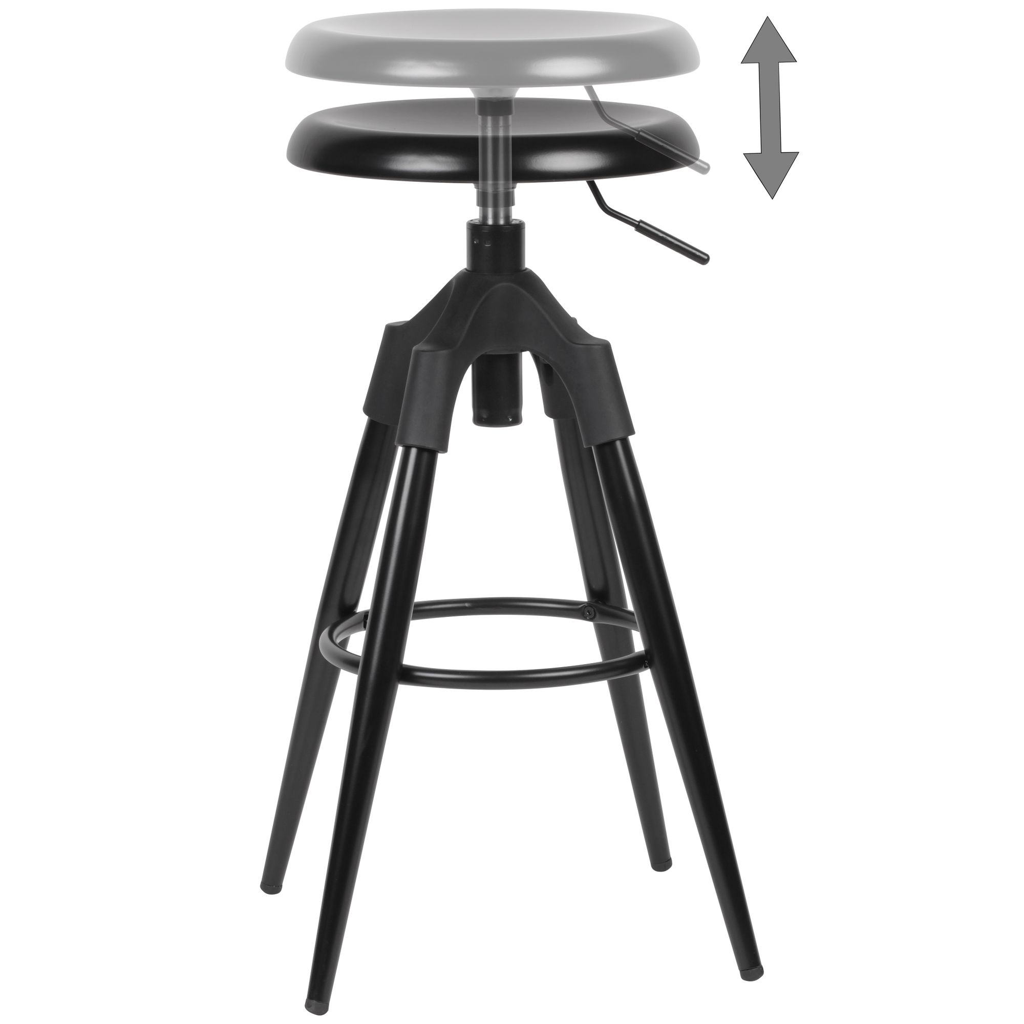 Información sobre el producto "Taburete de bar metálico negro | Altura del asiento 72-80 cm | Carga máx. 100 kg"