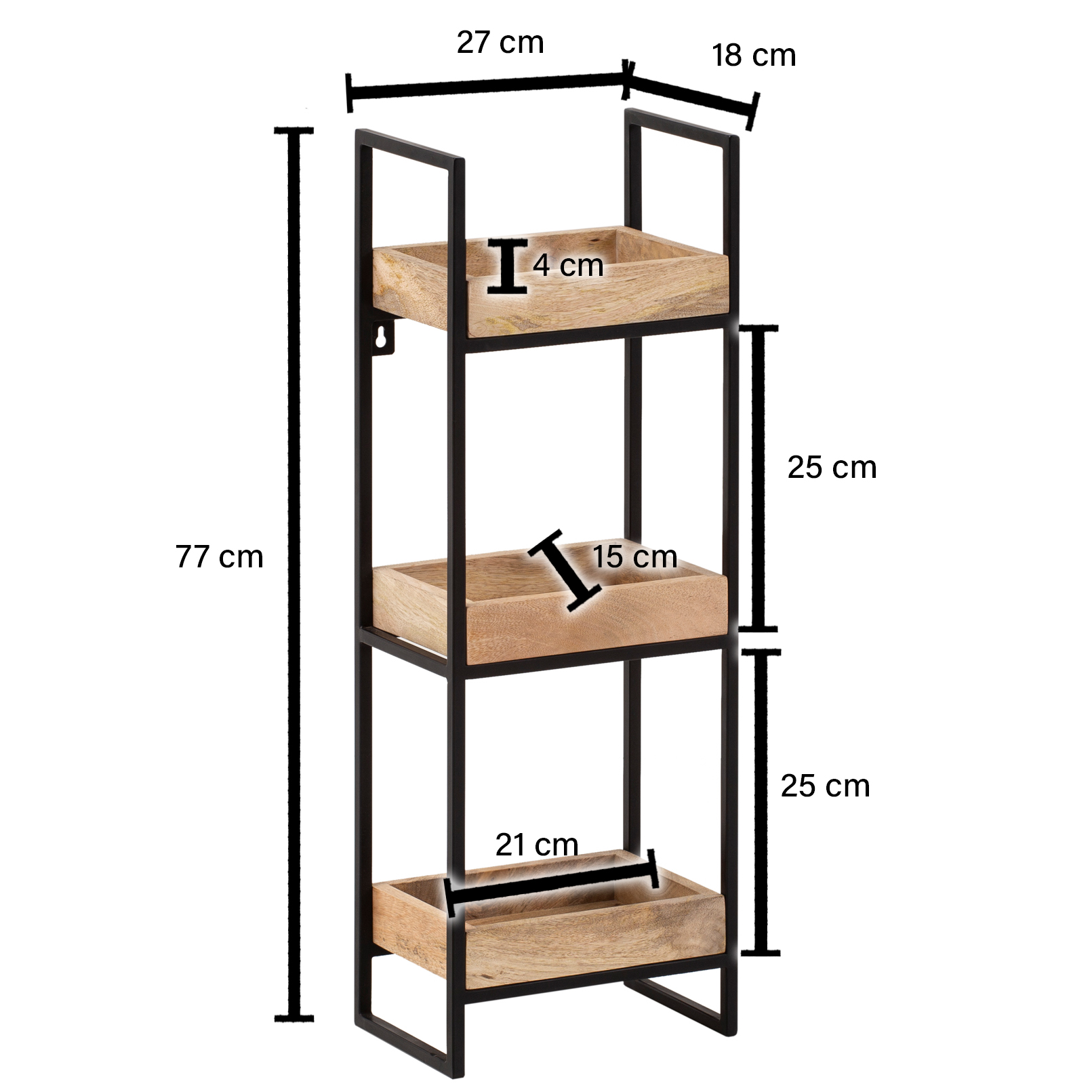 Información sobre el producto "Estantería de Pared 27x77x18 cm Madera Maciza de Mango / Metal | Diseño Industrial | 3 Estantes Marrón Claro / Marco Negro"