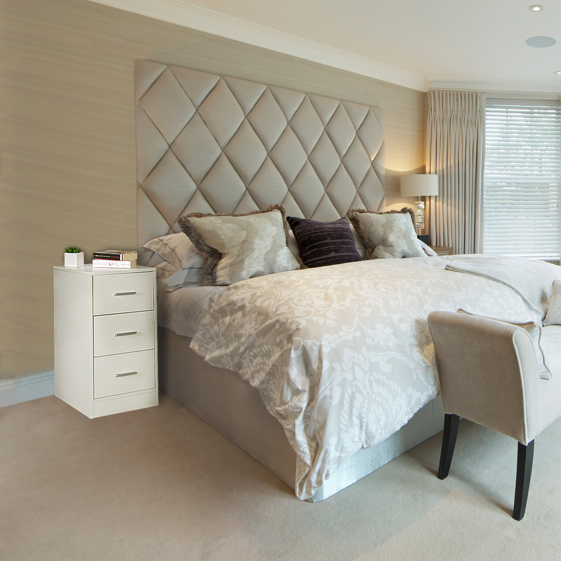 Mesa de Noche FOGGIA Madera Blanca | 37,5 x 68 x 35 cm | 3 Cajones Altos