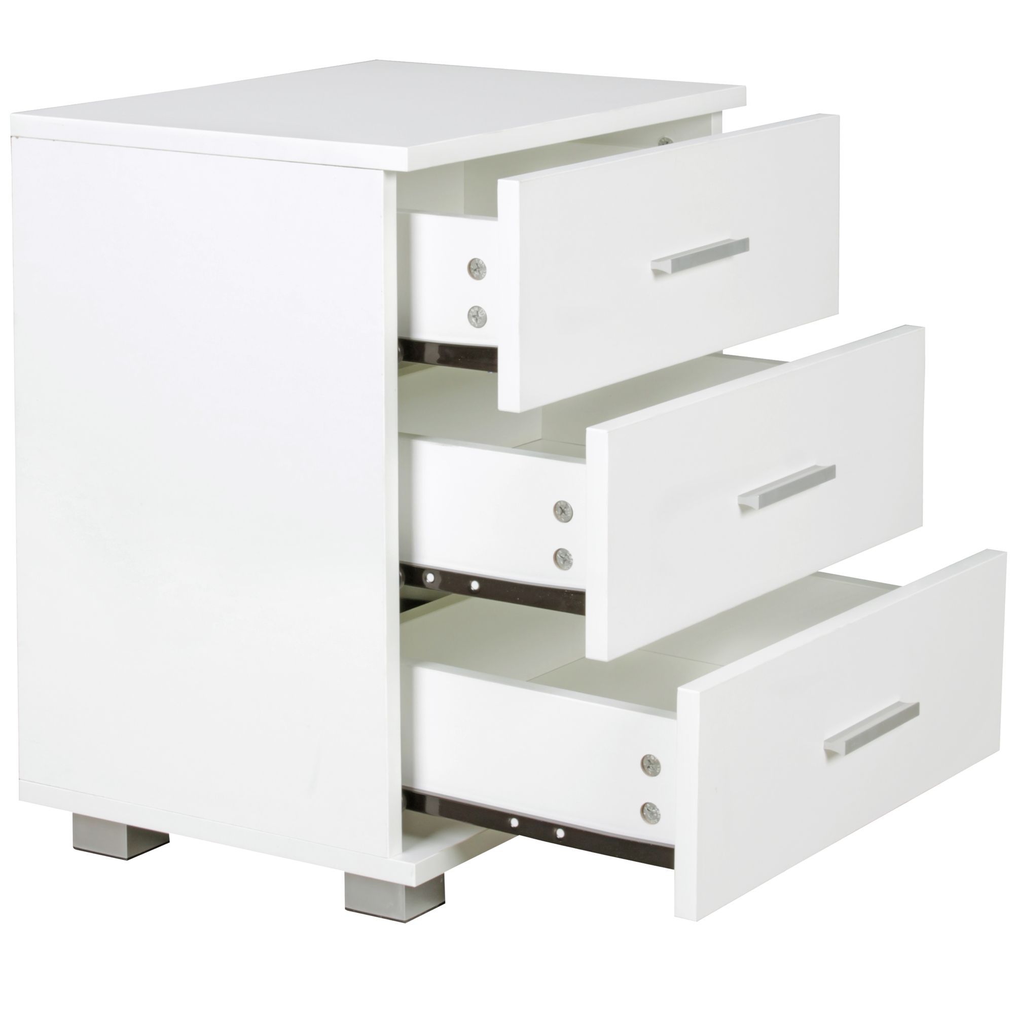Información sobre el producto "Mesa de Noche LATINA Madera Blanca | 45 x 54 x 34 cm | 3 Cajones"