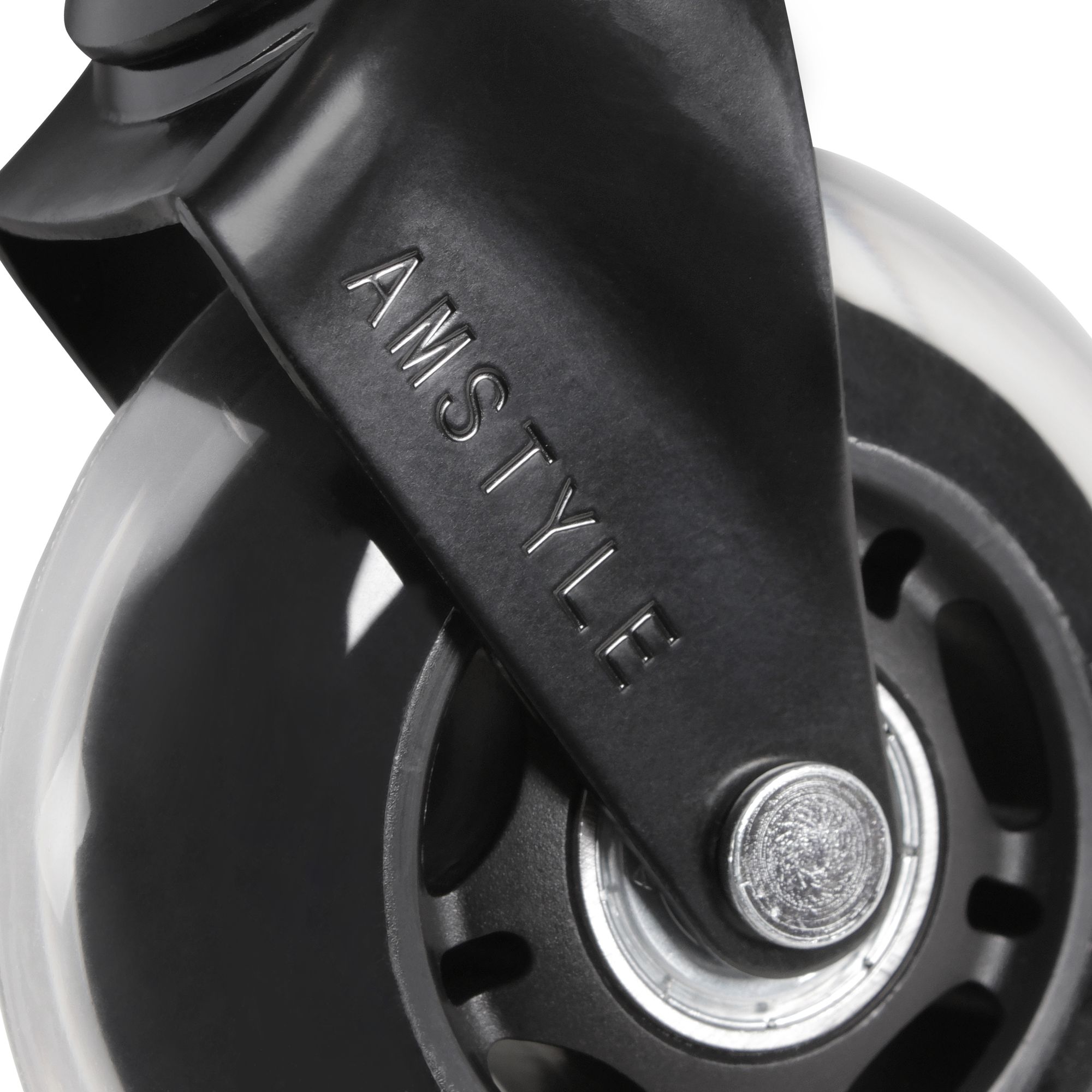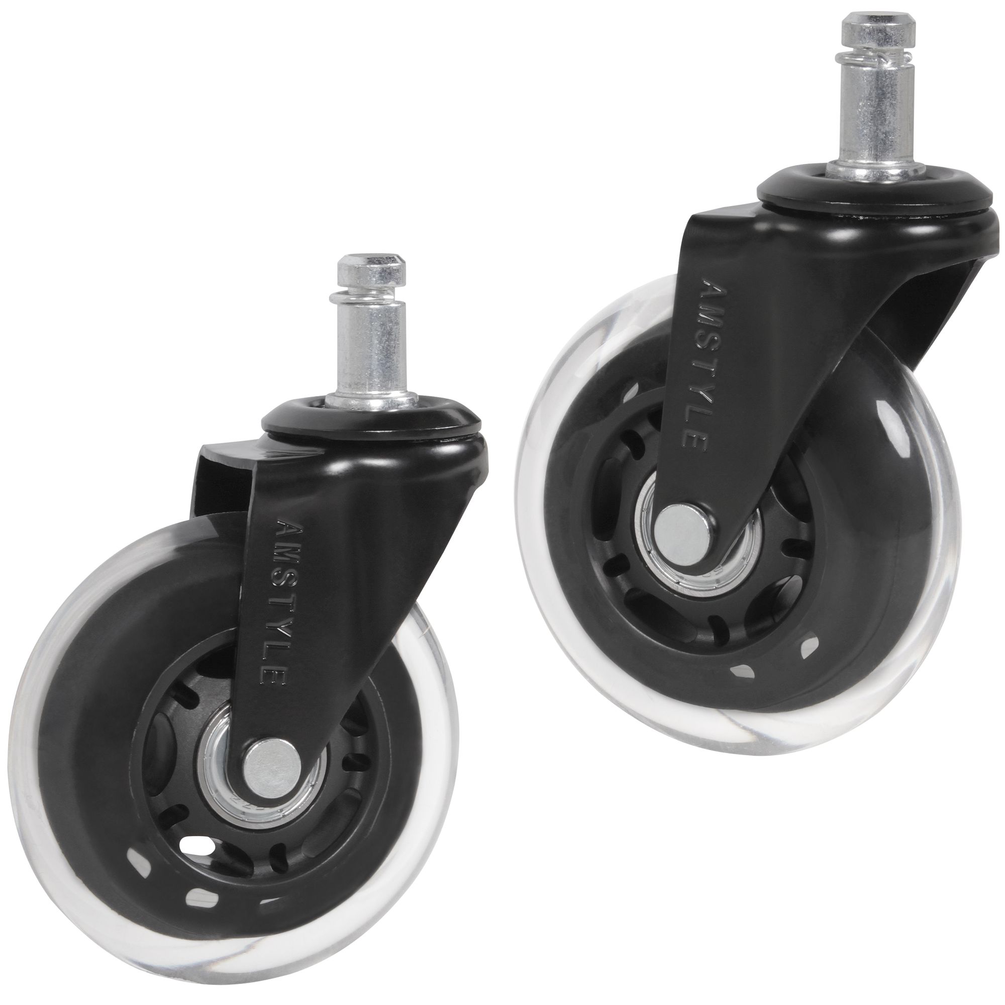 Set de 5 ruedas universales silenciosas para silla de oficina | Transparente / Negra | Diámetro 75 mm, Pasador 11 mm