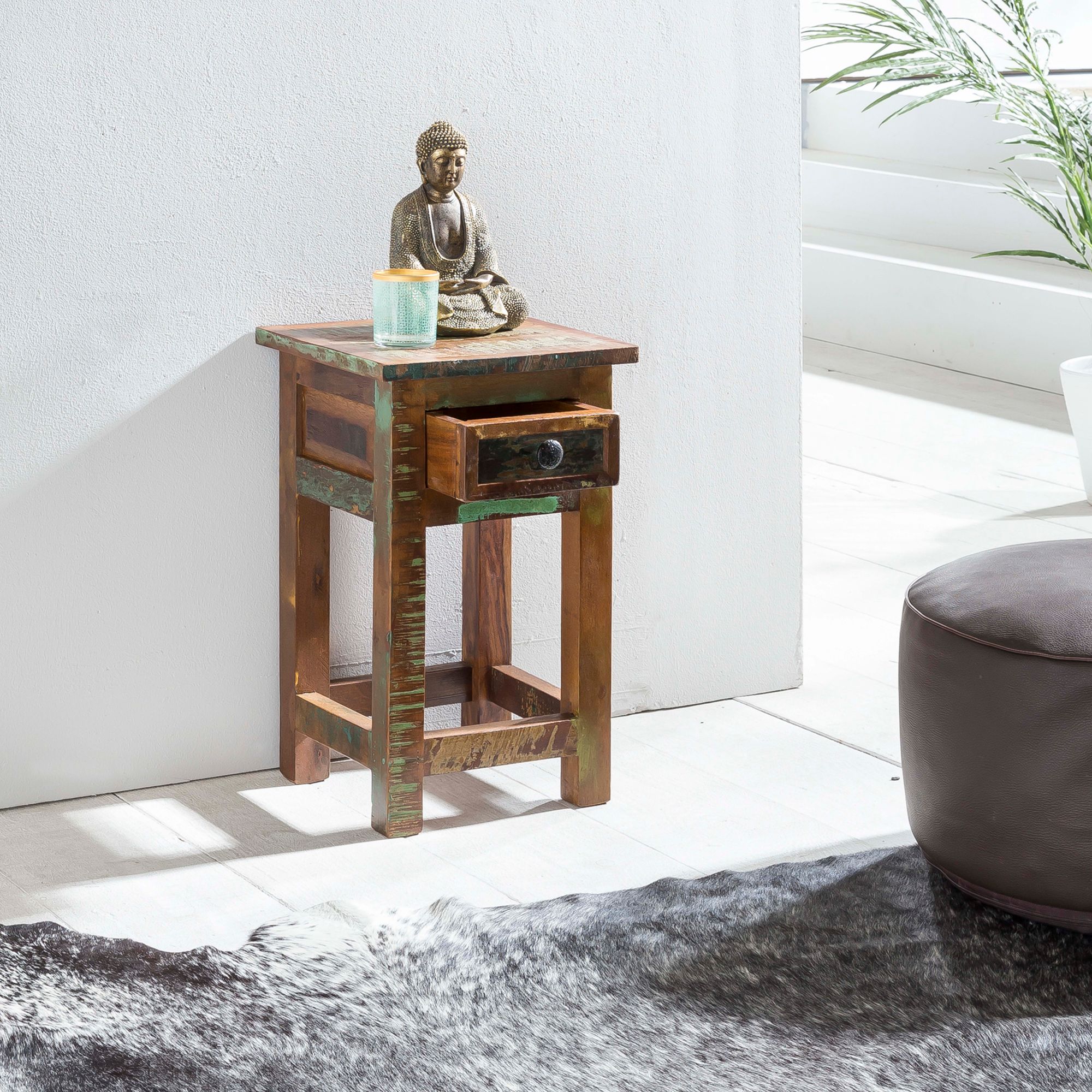 Información sobre el producto "Mesa auxiliar Kalkutta | Madera maciza reciclada marrón | 30 x 30 x 50 cm"