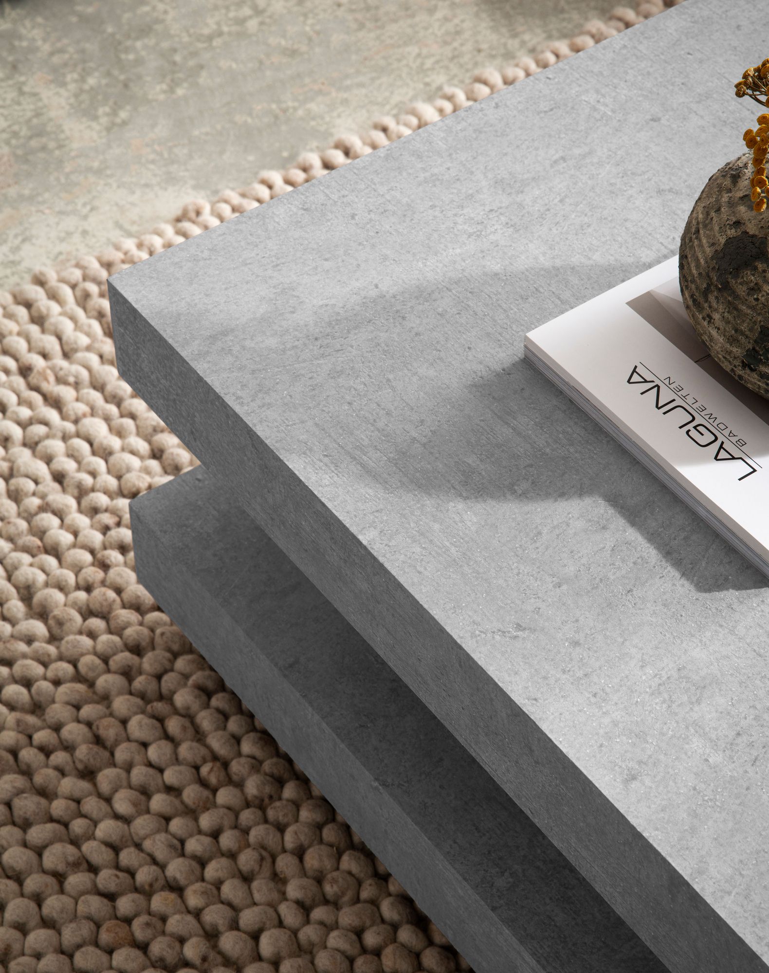 - Superficie duradera con efecto hormigón para aspecto elegante