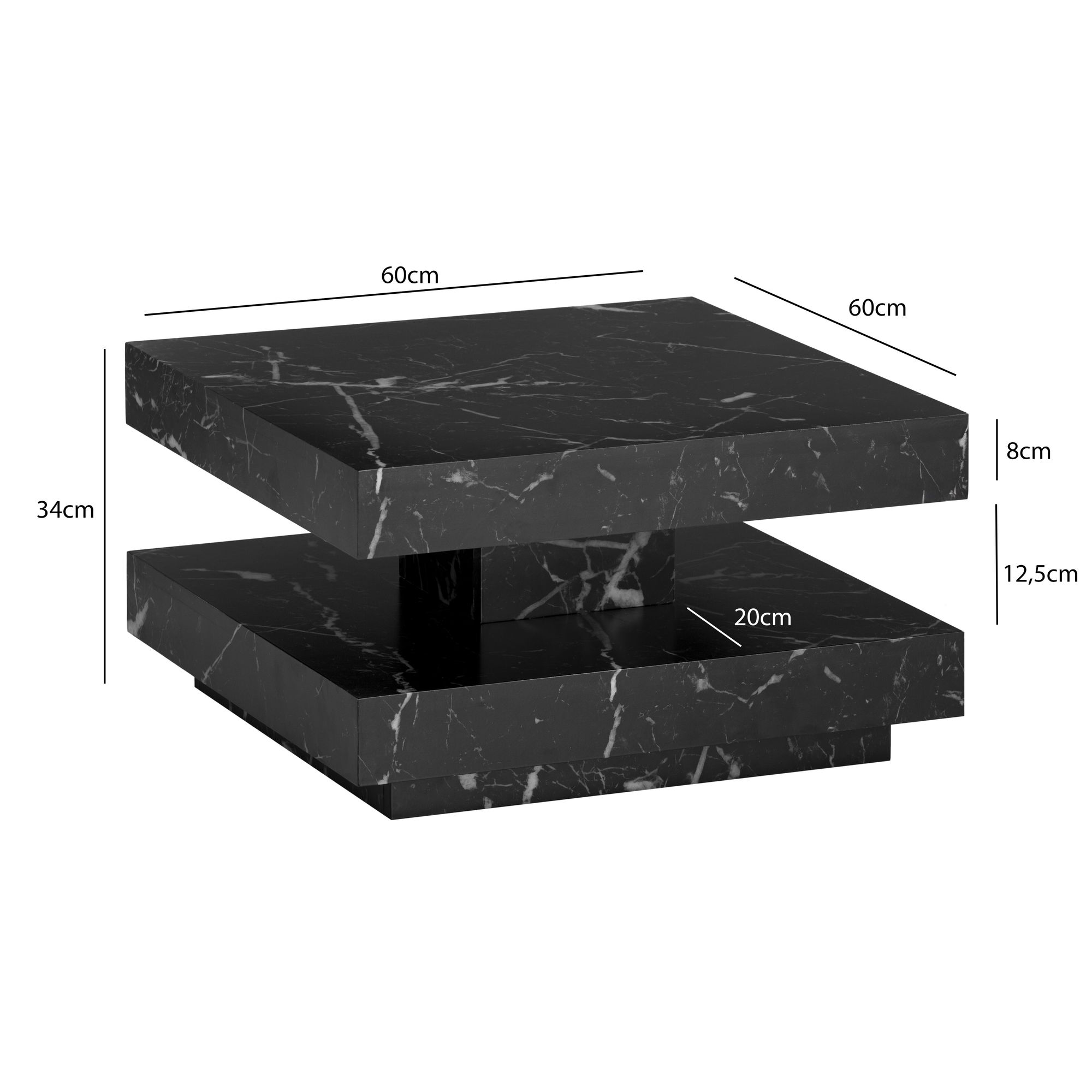 Información sobre el producto "Mesa de centro cuadrada en MDF foliado | Negro efecto mármol | 60x60x34 cm"