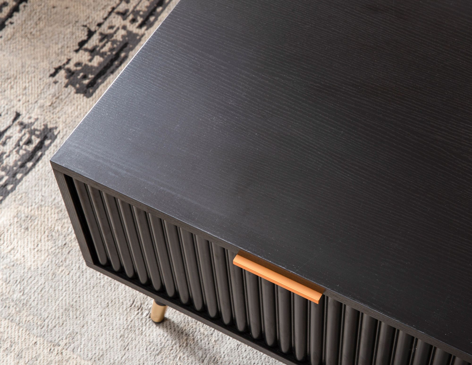 Información sobre el producto "Mesa de centro negra con decoración de roble | 110x60x43 cm | Mesa moderna con cajones y almacenamiento"